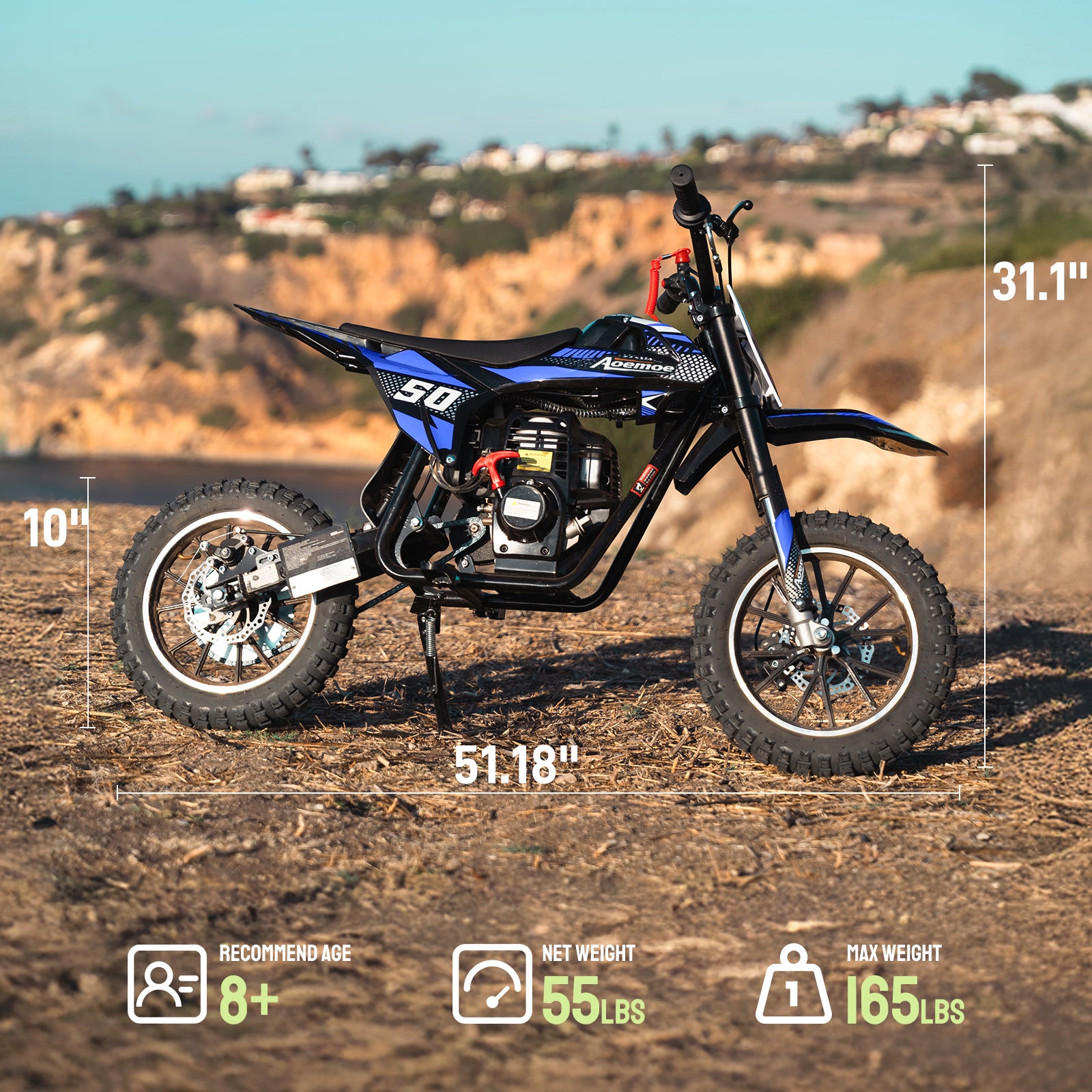 Gas-Only Operation: This kids dirt bike only needs gasoline from the gas station, no need to mix gasoline again. The operation is simple and easy, and after filling up with fuel, it can run 18.5 miles and reach a top speed of 25 miles per hour.