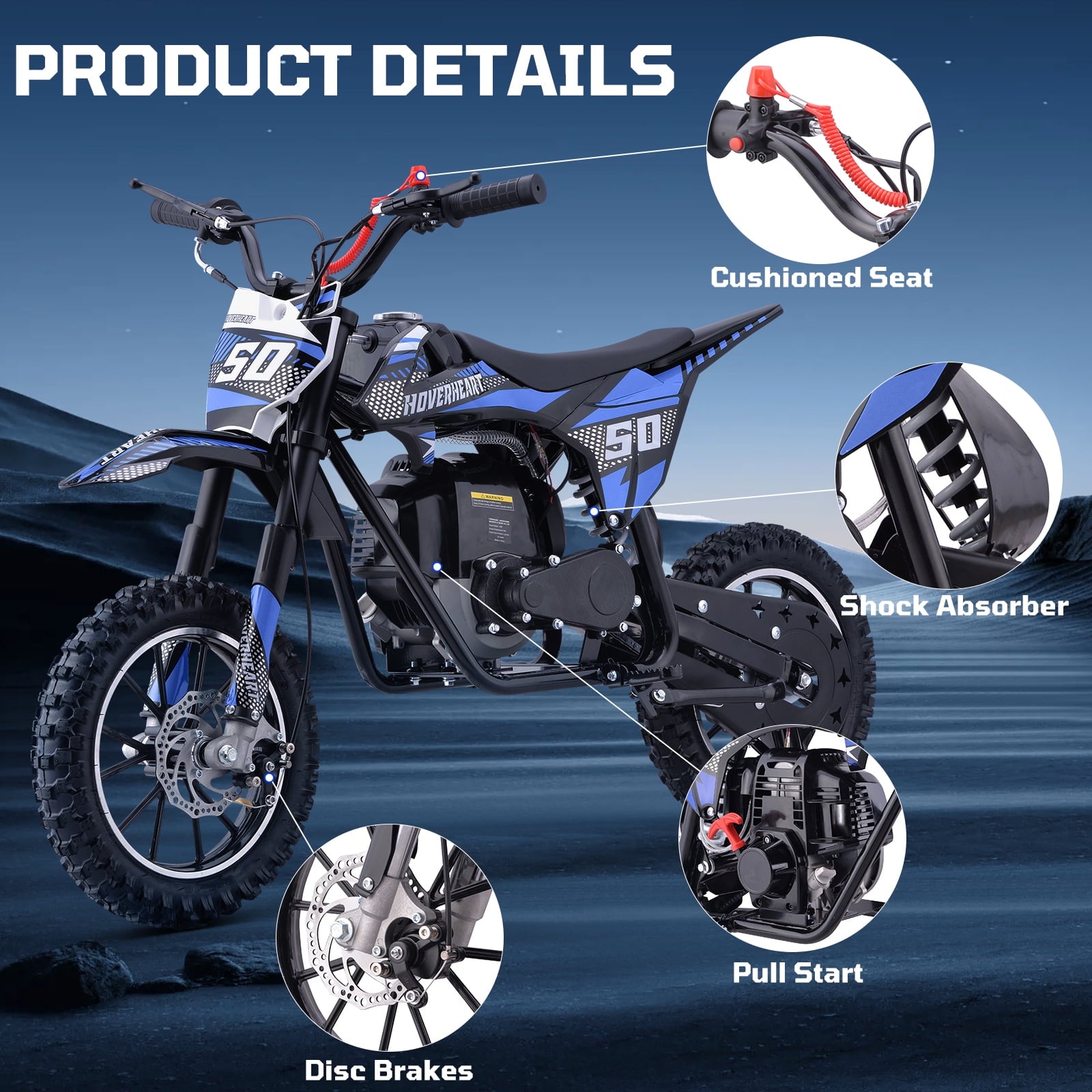 Easy Pull Start: The mini dirt bike provides easy pull start operations, allowing children to easily start a 50cc mud truck. Enjoy the fun of riding by using the throttle handle.