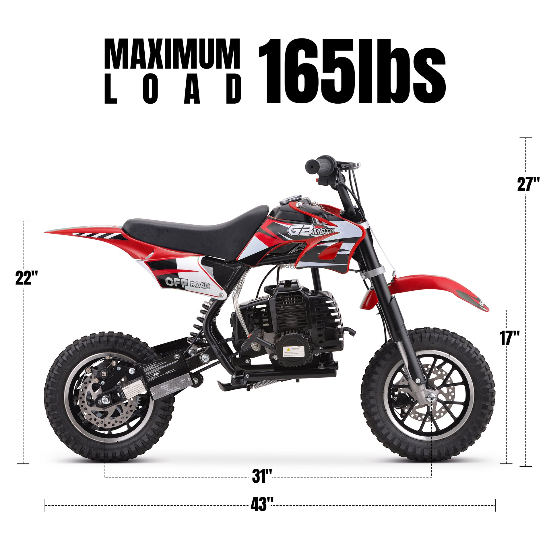 QEASET 49CC Dirt Bike, Gas Powered Mini Bike, Red