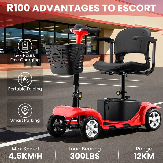 4 Wheel Mobility Scooter for Seniors, Foldable Powered Mobile Wheelchair for Adult 300lbs, Red