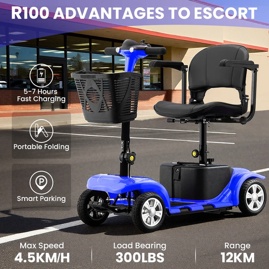 4 Wheel Mobility Scooter for Seniors, Foldable Powered Mobile Wheelchair for Adult 300lbs, Blue