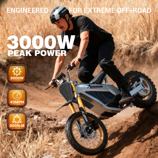 Aoemoe 48V 3000W (Peak Power) Electric Dirt Bike for Teens, 50-55km/h, 40km Range, Off-Road Li-Battery