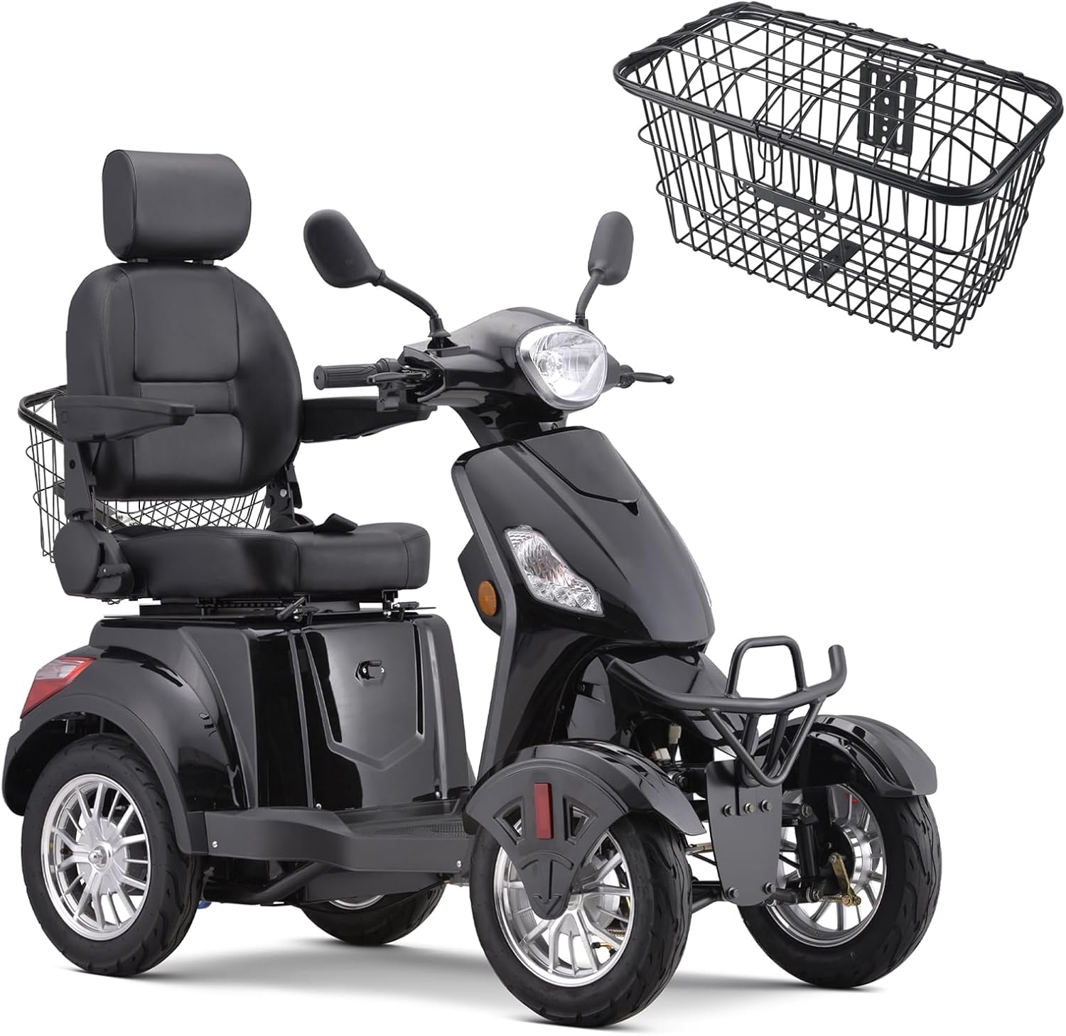 • [800W Motorized Scooter for Seniors]: Powered by a powerful yet quiet 800W brushless motor and a 48V 20Ah long-range extended battery, this 4-wheeled mobility scooters for adults can travel farther and faster than other scooters on the market. The front and rear electronic braking system ensures driving stability and maneuverability even when sudden stops are required.