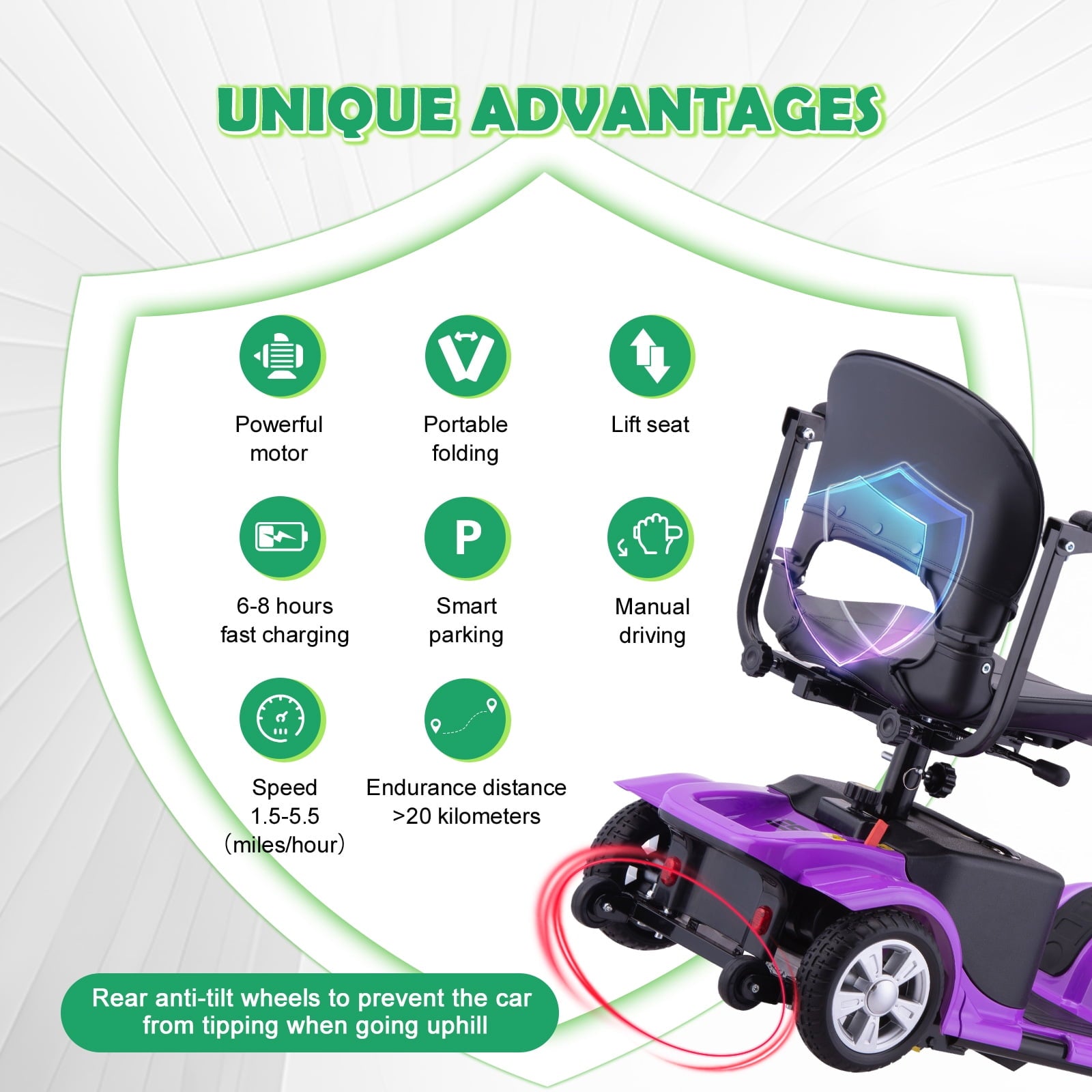 QEASET 4 Wheel Mobility Scooter,Mobility Scooter for Adults, Senior, Electric Powered Chargeable Device for Travel