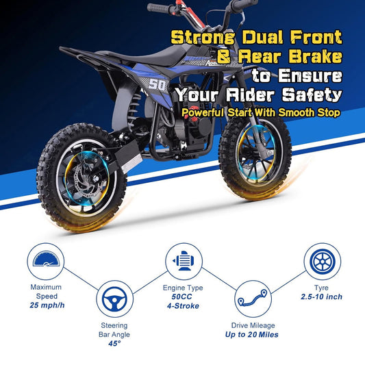 Aoemoe 40cc 4-Stroke Kids Mini Dirt Bike, Gas Powered, Rear Suspension & Disc Brakes, 20Mph/165Lbs,Blue