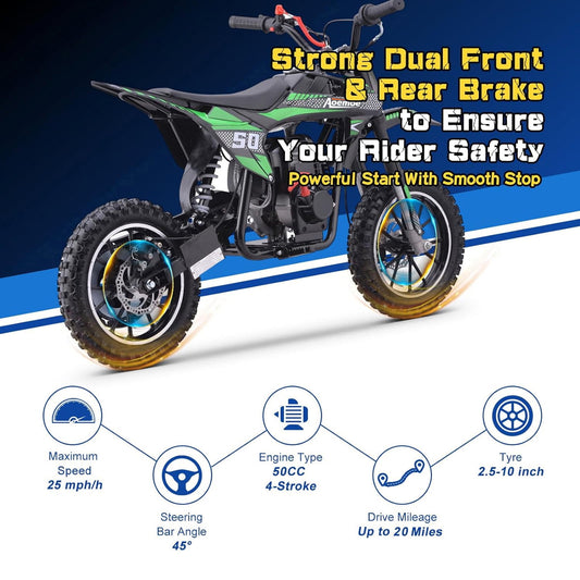 Aoemoe 40cc 4-Stroke Kids Mini Dirt Bike, Gas Powered, Rear Suspension & Disc Brakes, 20Mph/165Lbs,Green