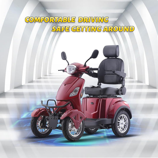 Super Large Electric 4 Wheel Mobility Scooters, Heavy Duty 800W Wheelchair Device, 500 LBS Capacity for Seniors & Adults, Speed Adjust, Remote Key, Receive Ready to Ride.(Red)