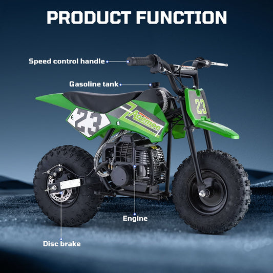 Aoemoe 49cc Kids Dirt Bike Gas Powered, Mini Off-Road Motorcycle with Suspension & Disc Brakes, 18 Mph, 160 Lbs Capacity, Green