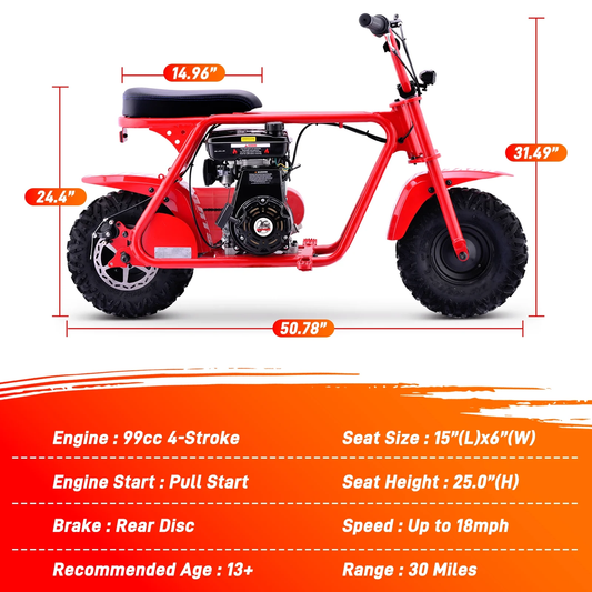 Aoemoe 99CC MB001 Gasoline Mini Dirt Bike,4-Stroke 18MPH Off Road Motorcycle, Weight Support Up to 165 LBS - Red