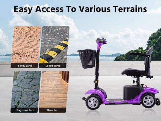 4 Wheels Mobility Scooter for Adults, Senior Electric Powered Chargeable Device for Travel, Lightweight and Portable, with LED Headlights and Basket, Charger Included (Purple)