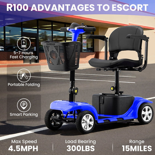 Arshin Upgrade 4 Wheels Mobility Scooters for Seniors & Adult,Foldable Mobility Wheelchair for Adult,All Terrain Motorized Scooters with 300 LBS,Long Travel Range,Basket,Rotating Seat,Blue