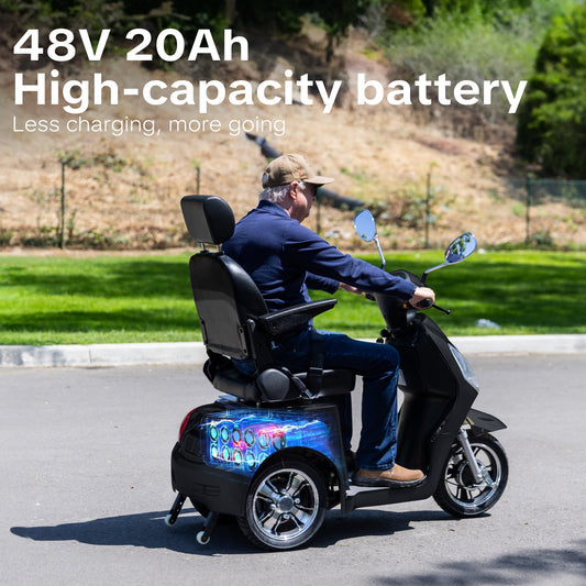 Heavy Duty 3 Wheel Mobility Scooters for Seniors & Adults 500lbs Capacity,Arshin Electric Powered Wheelchair Device,800W All Terrain Fast Mobility Scooter,31 Miles Long Range Battery(Black)