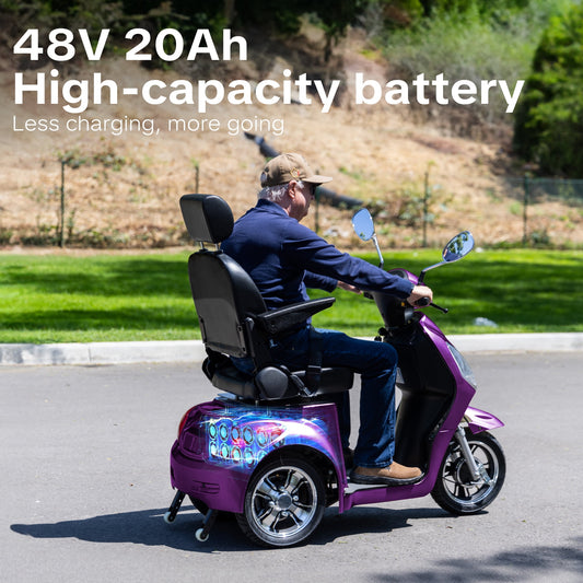 Heavy Duty 3 Wheel Mobility Scooters for Seniors & Adults 500lbs Capacity,Arshin Electric Powered Wheelchair Device,800W All Terrain Fast Mobility Scooter,31 Miles Long Range Battery(Purple)