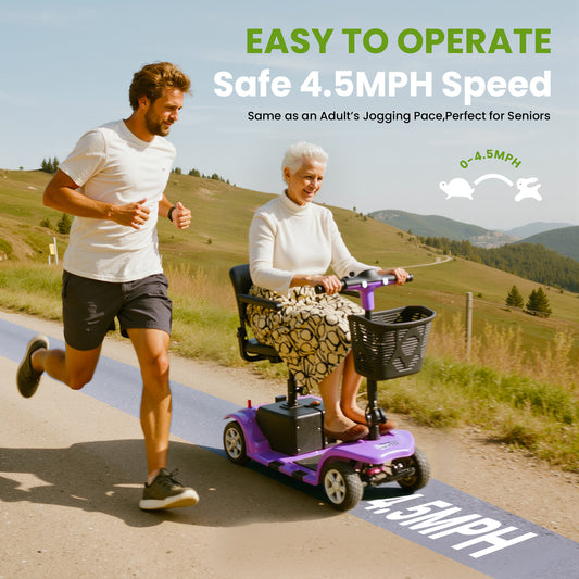 Mosta Adult, Senior Mobility Scooter,4-wheel Electric Rechargeable Travel Device with LED Headlight and Basket, Including Charger,Purple