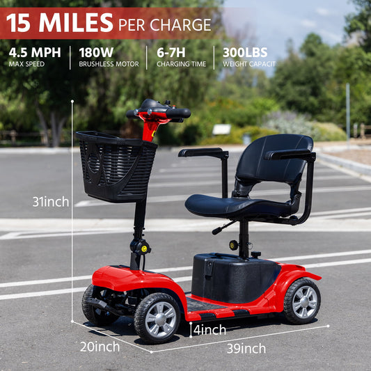 Aoemoe 4 Wheel Mobility Scooter for Seniors, Foldable Powered Mobile Wheelchair for Adult 300lbs, Red