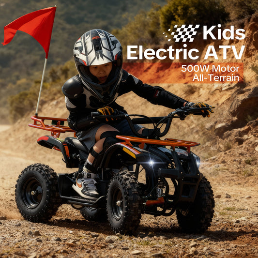 QEASET 500W 36V Battery Ride-On Off-Road 4-Wheeler – 15-Mile Range, Orange