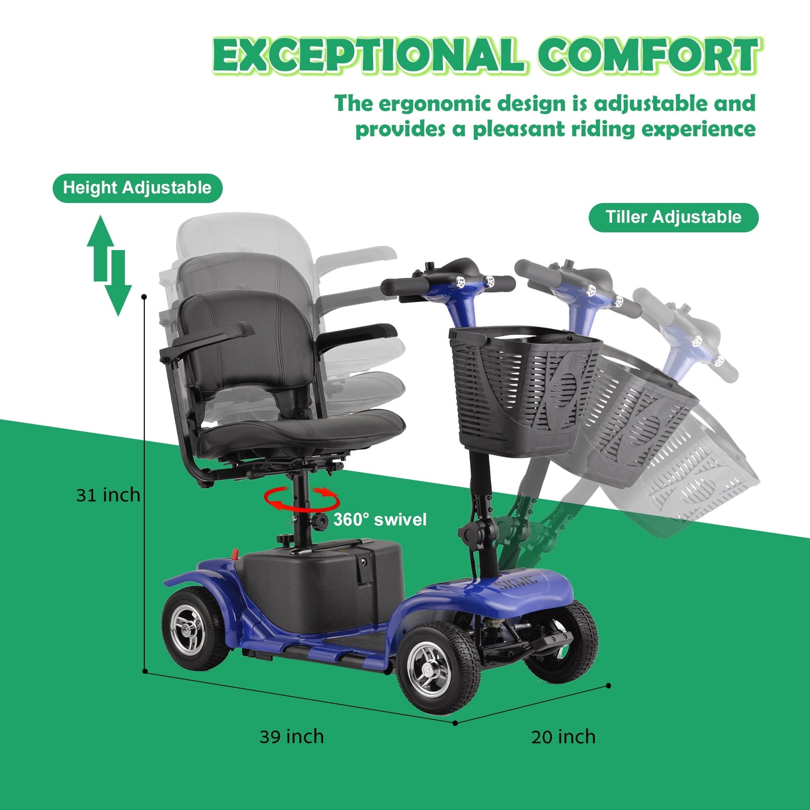 Aoemoe 4 Wheels Mobility Scooter for Adults, Senior Electric Powered Chargeable Device for Travel, Lightweight and Portable, with LED Headlights and Basket, Charger Included (Blue)