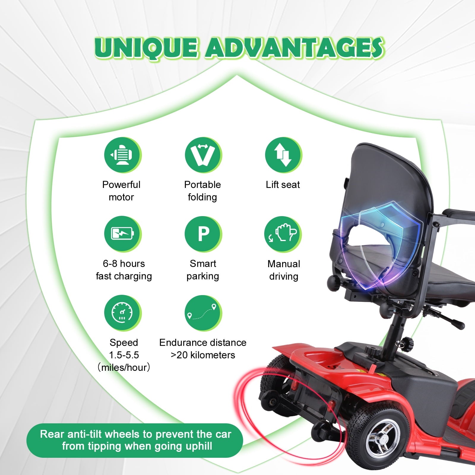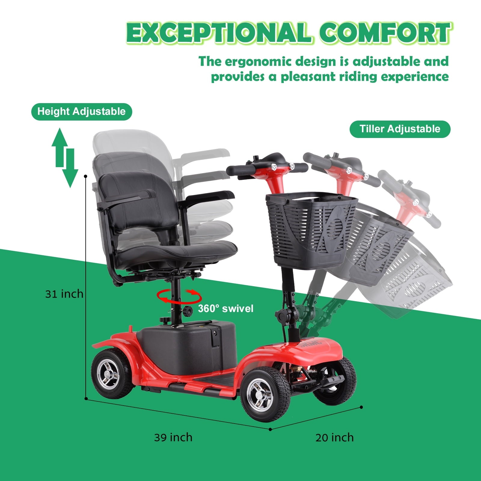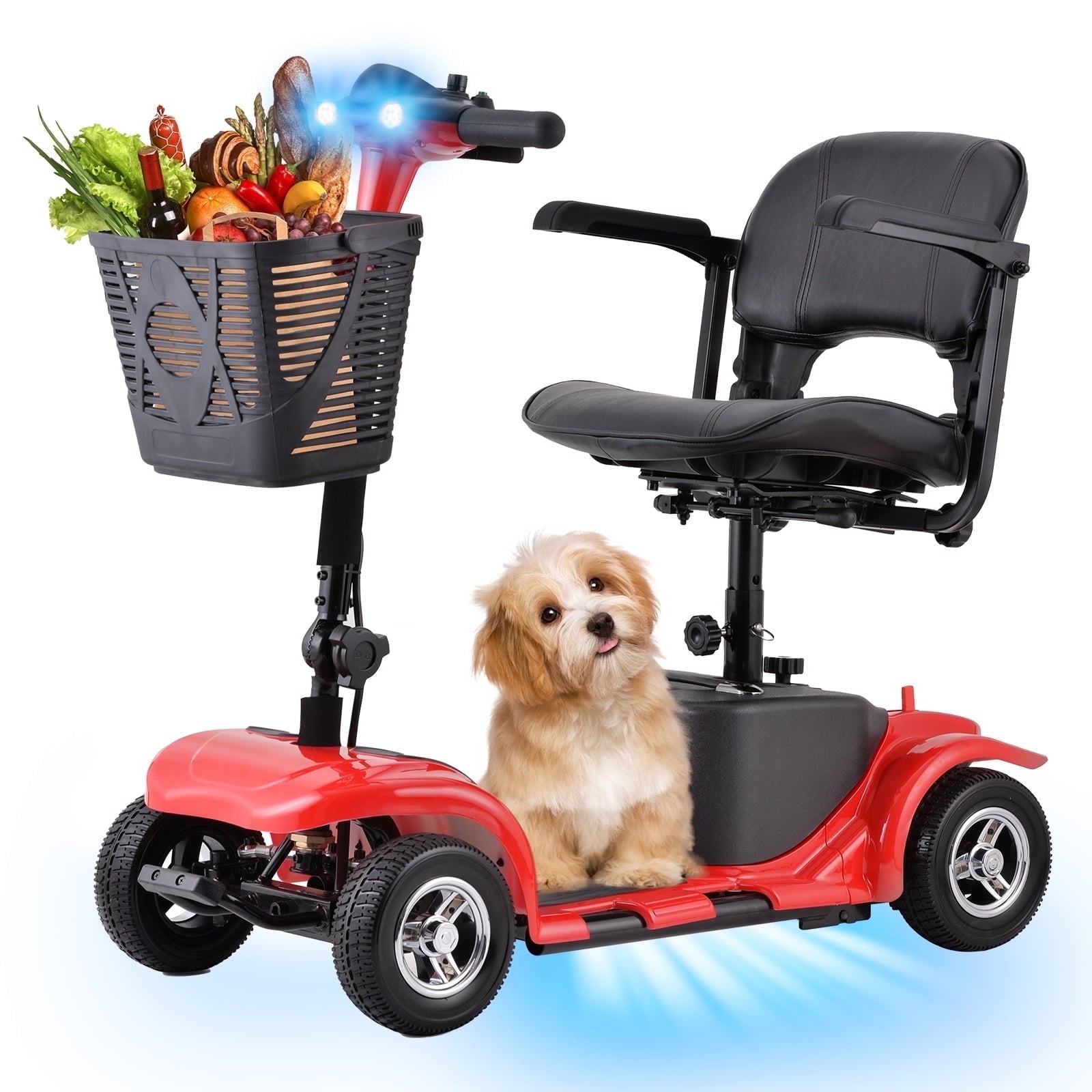 Aoemoe 4 Wheels Mobility Scooter for Adults, Senior Electric Powered Chargeable Device for Travel, Lightweight and Portable, with LED Headlights and Basket, Charger Included (RED)