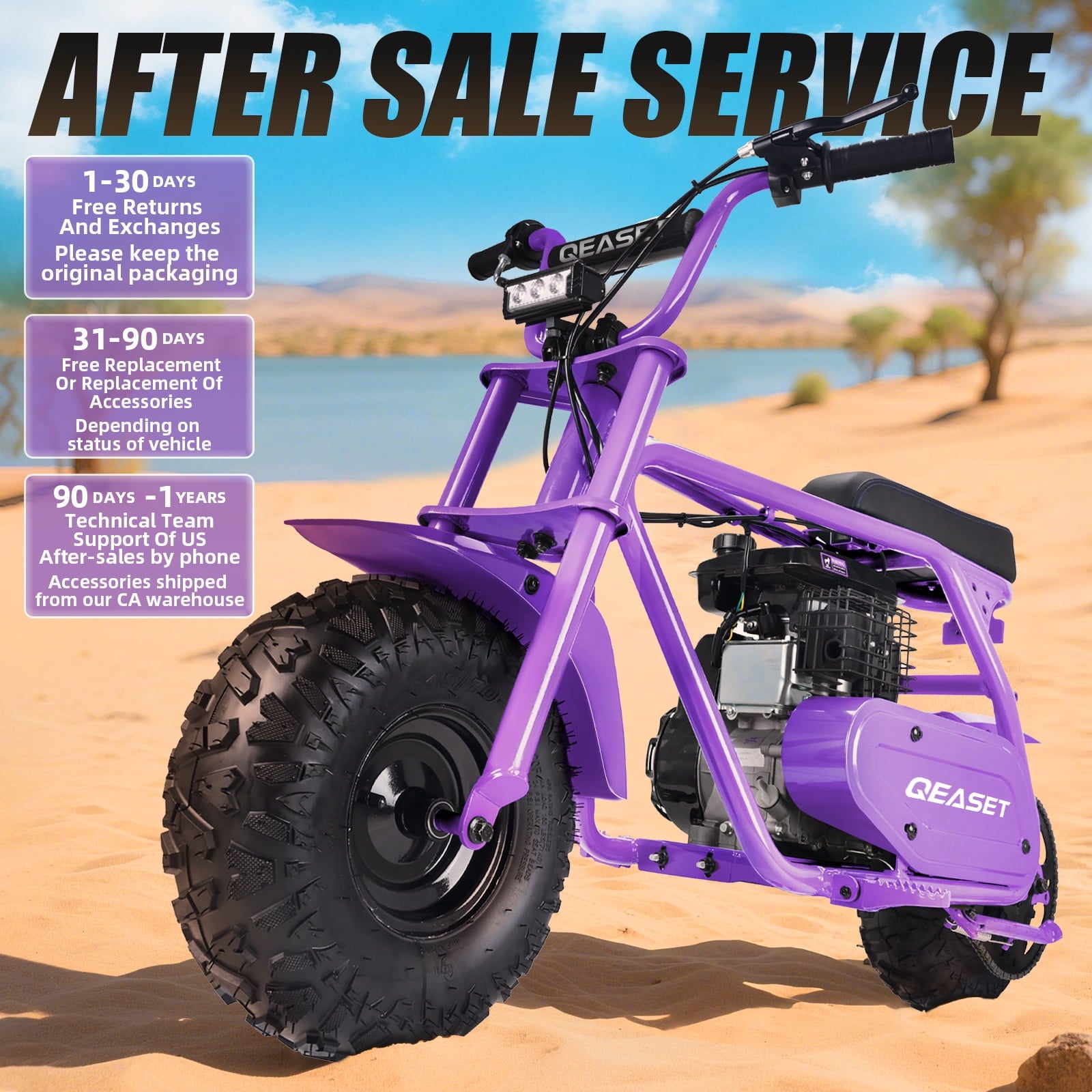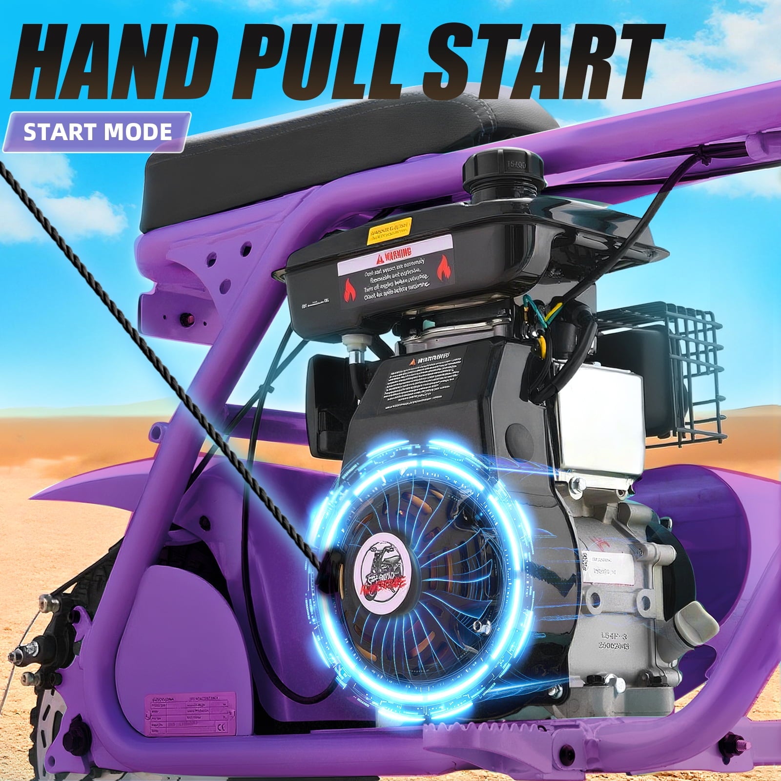 Our Mini Dirt Bike come with a rechargeable LED headlight. Four adjustable light modes:Low beam、High beam、All bright:white/yellow、Flash. A gas bike that is safe and confident to use at night.