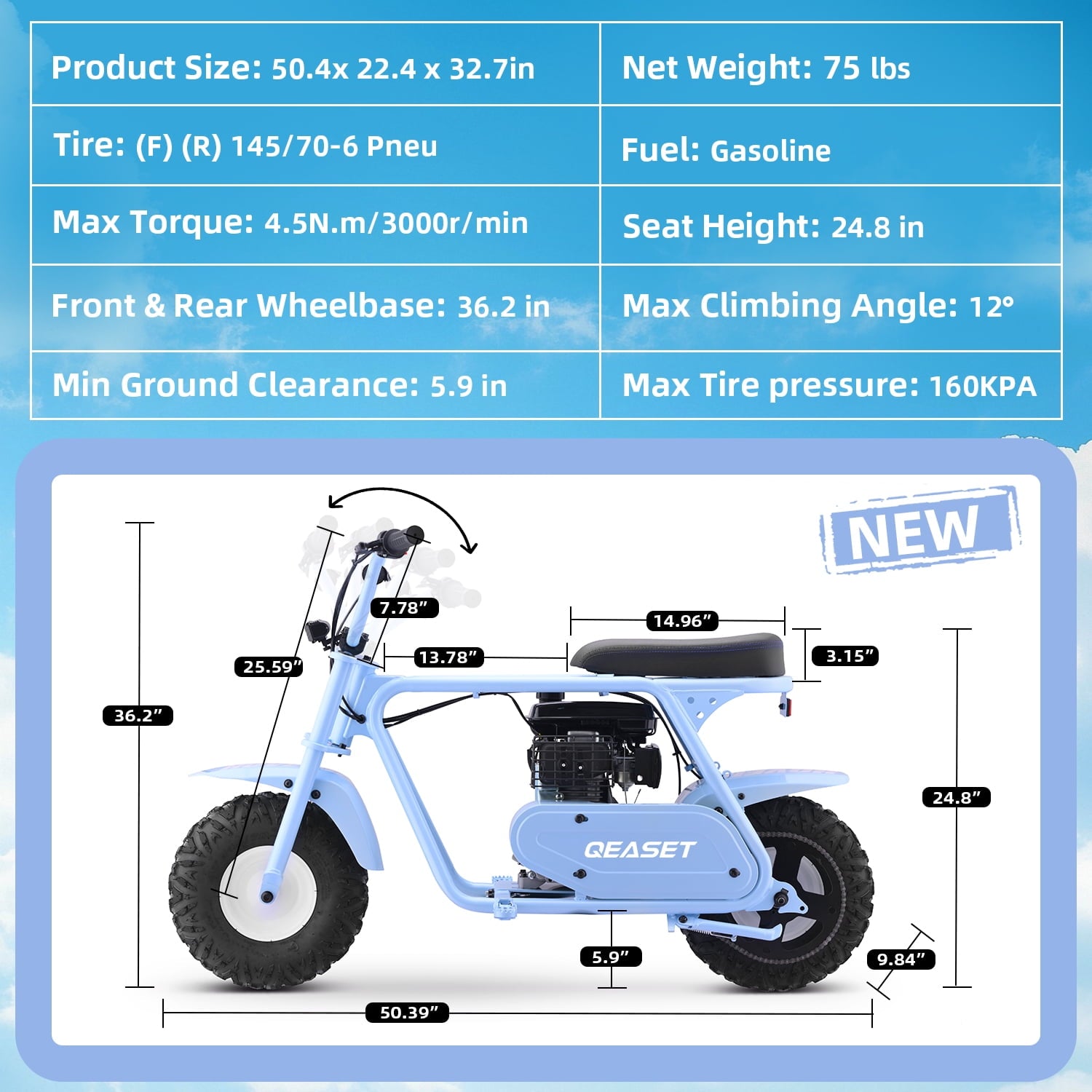 QEASET 99cc Dirt Bike, Gas Powered, 4-Stroke with LED Headlight, 25MPH Minibike Trail Bike, Pull Start, Poucket Bike for Teenager and Adult, Summer Gift