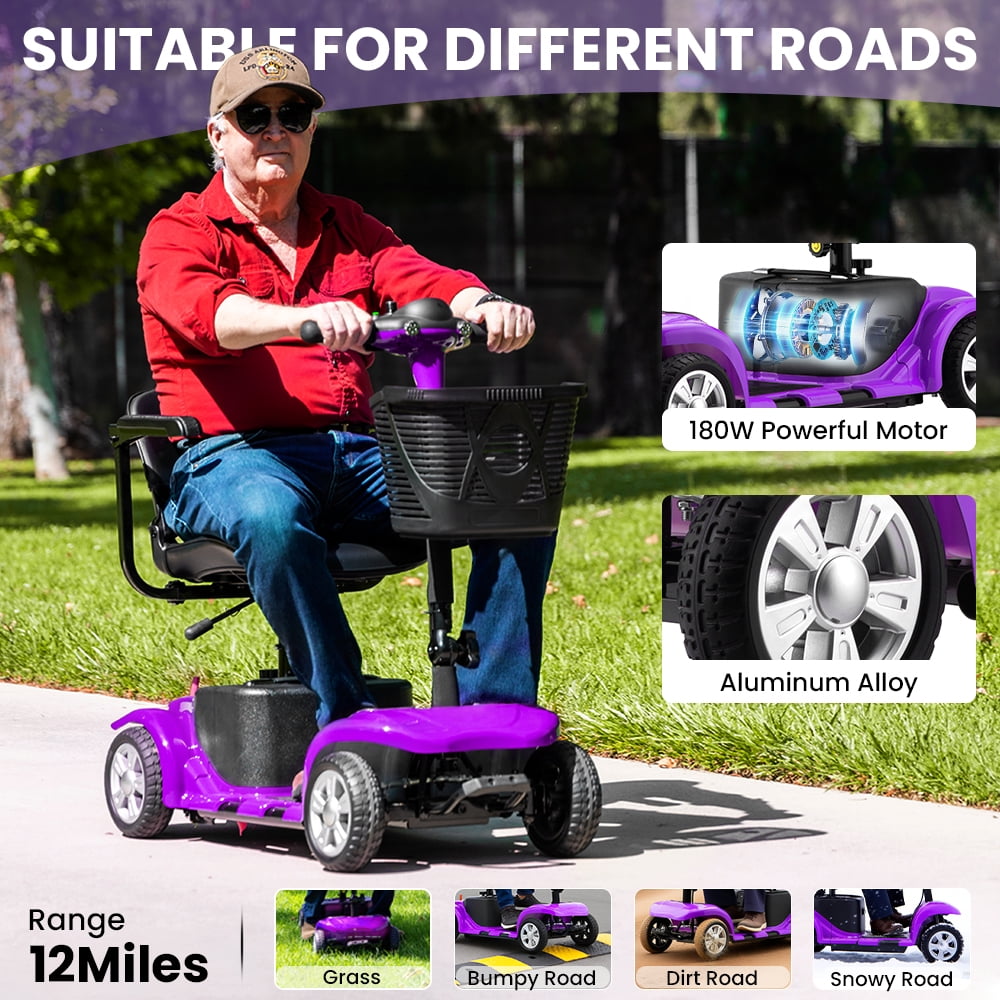 Aoemoe 4 Wheel Mobility Scooter for Seniors, Foldable Powered Mobile Wheelchair for Adult 300lbs, Purple