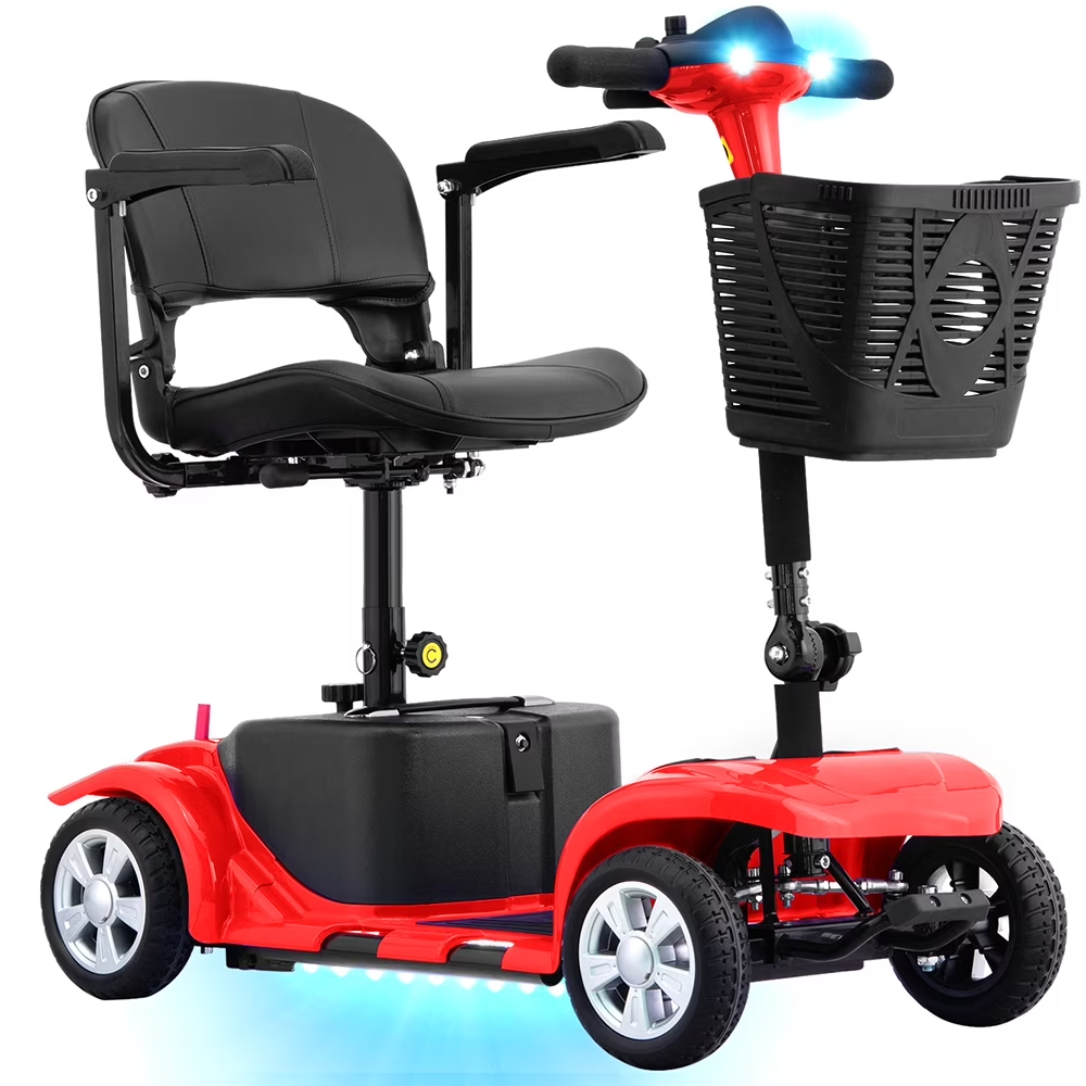 4 Wheel Mobility Scooter for Seniors, Foldable Powered Mobile Wheelchair for Adult 300lbs, Red