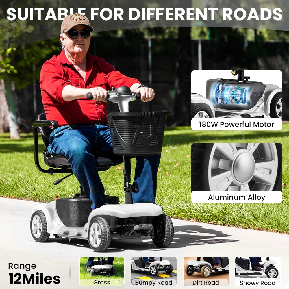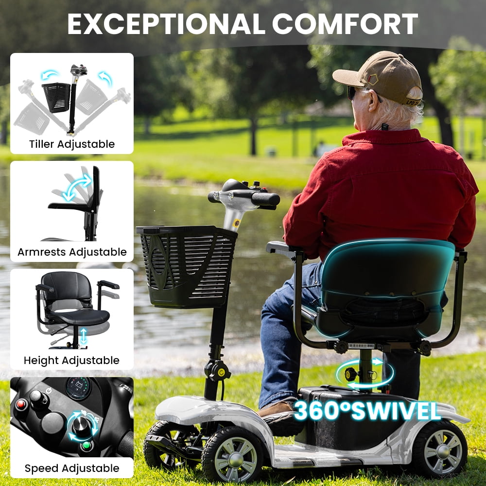 Aoemoe 4 Wheel Mobility Scooter for Seniors, Foldable Powered Mobile Wheelchair for Adult 300lbs, Silver