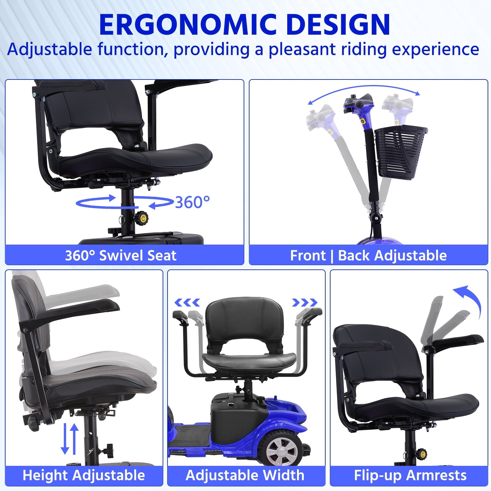 Aoemoe 4 wheeled Elderly Mobility Scooters are Suitable for the Elderly&Adult(Blue)