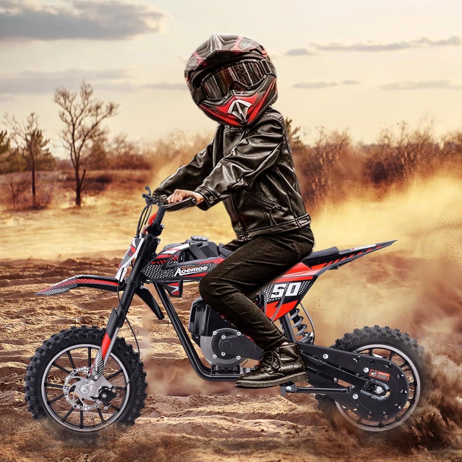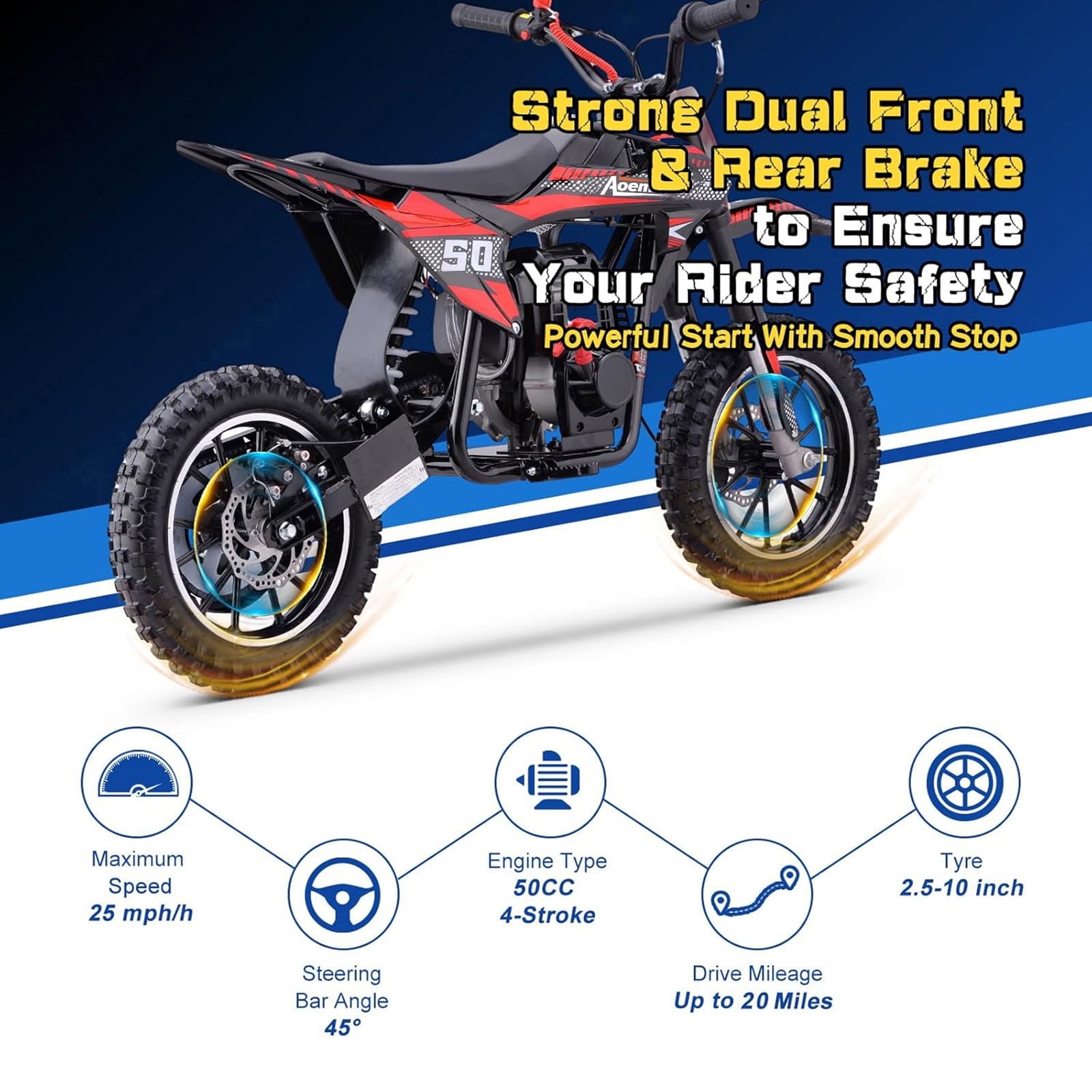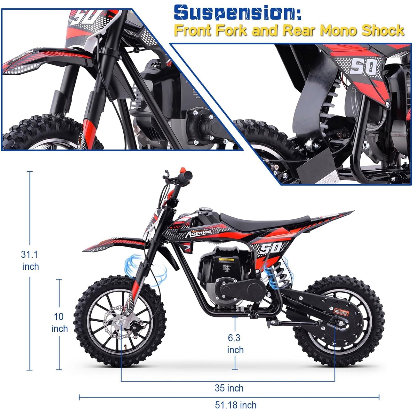 Aoemoe 40cc 4-Stroke Kids Mini Dirt Bike, Gas Powered, Rear Suspension & Disc Brakes, 20Mph/165Lbs,Red