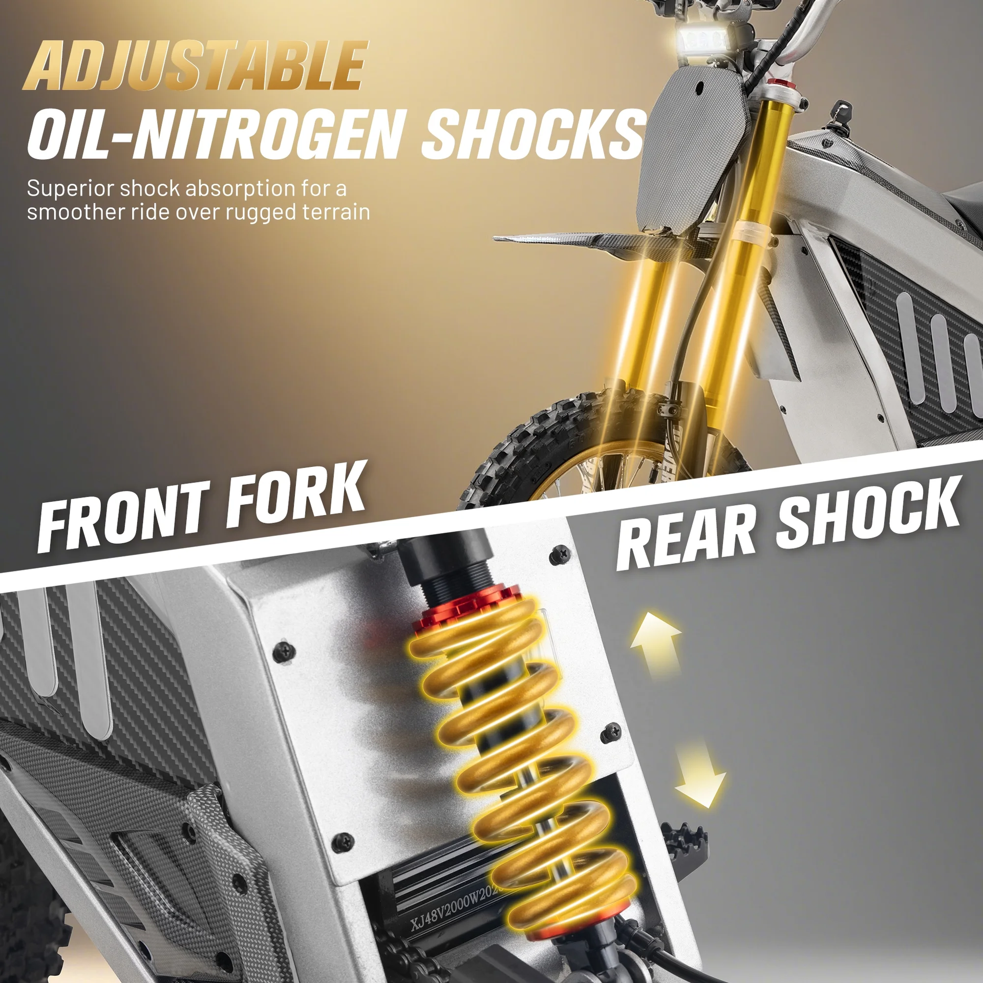 Meet the Aoemoe DZ009 electric dirt bike—built for riders who crave instant power without the noise and fumes. A sealed 48 V 30 Ah lithium pack feeds a 2000 W motor to launch you to 55 km/h while delivering 40 km of silent range on a single 10-hour charge. The 60 kg chromoly frame, long-travel hydraulic suspension and 270 mm clearance shrug off rocks, jumps and whoops. Dual hydraulic disc brakes and aggressive knobby tires keep you in control at any speed. Designed for ages 16+ and riders up to 100 kg, the bike ships 90 % pre-assembled from our U.S. warehouse—just bolt on the bars and ride. Enjoy 30-day free returns, 90-day parts warranty and lifetime tech support. Bring Aoemoe adrenaline to campgrounds, farms or private tracks—no gas, no noise, all fun.