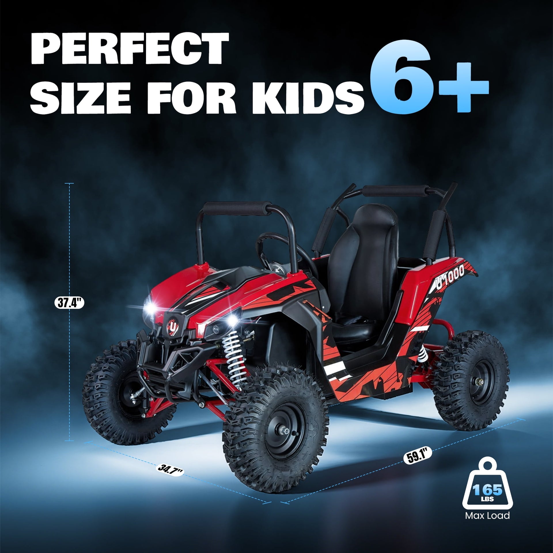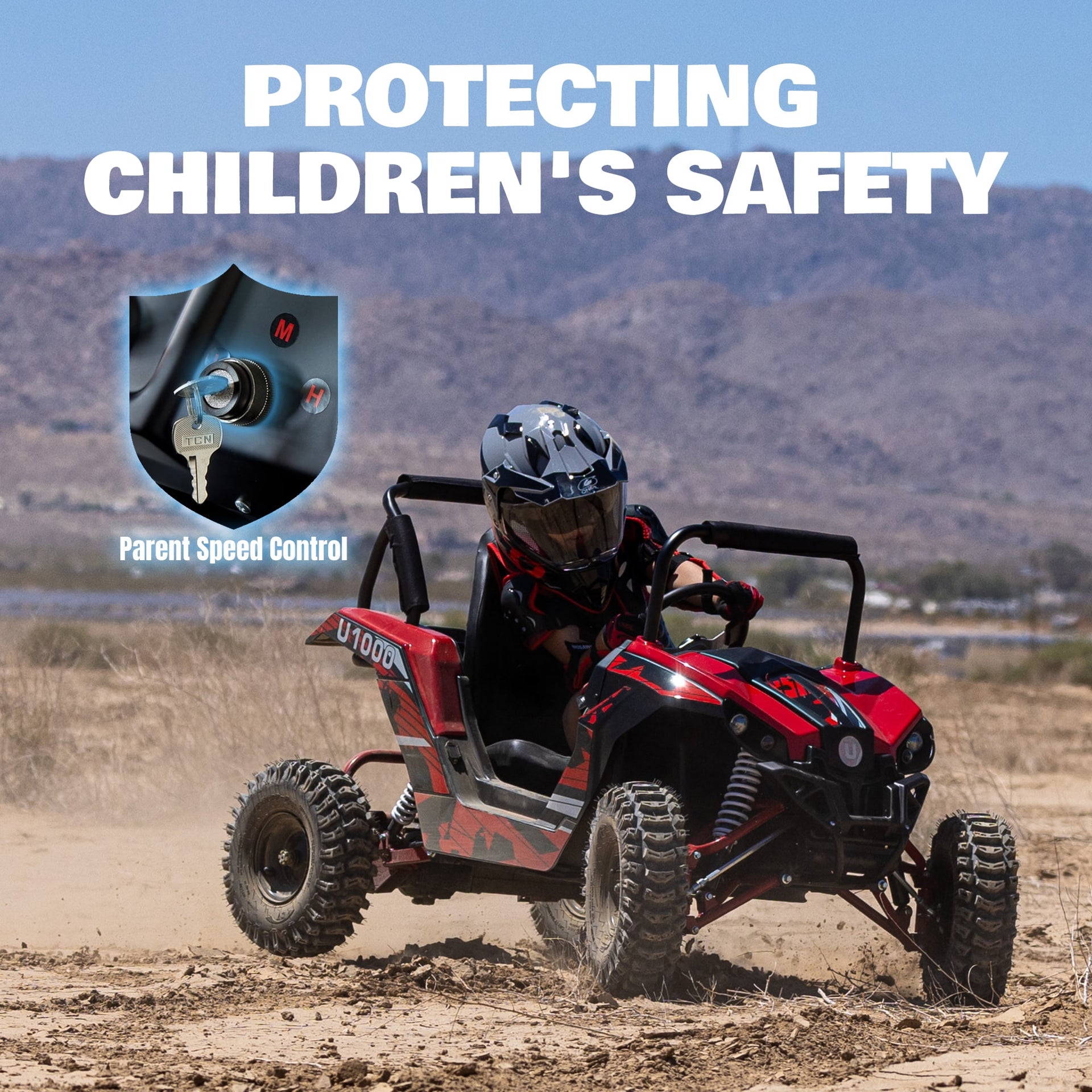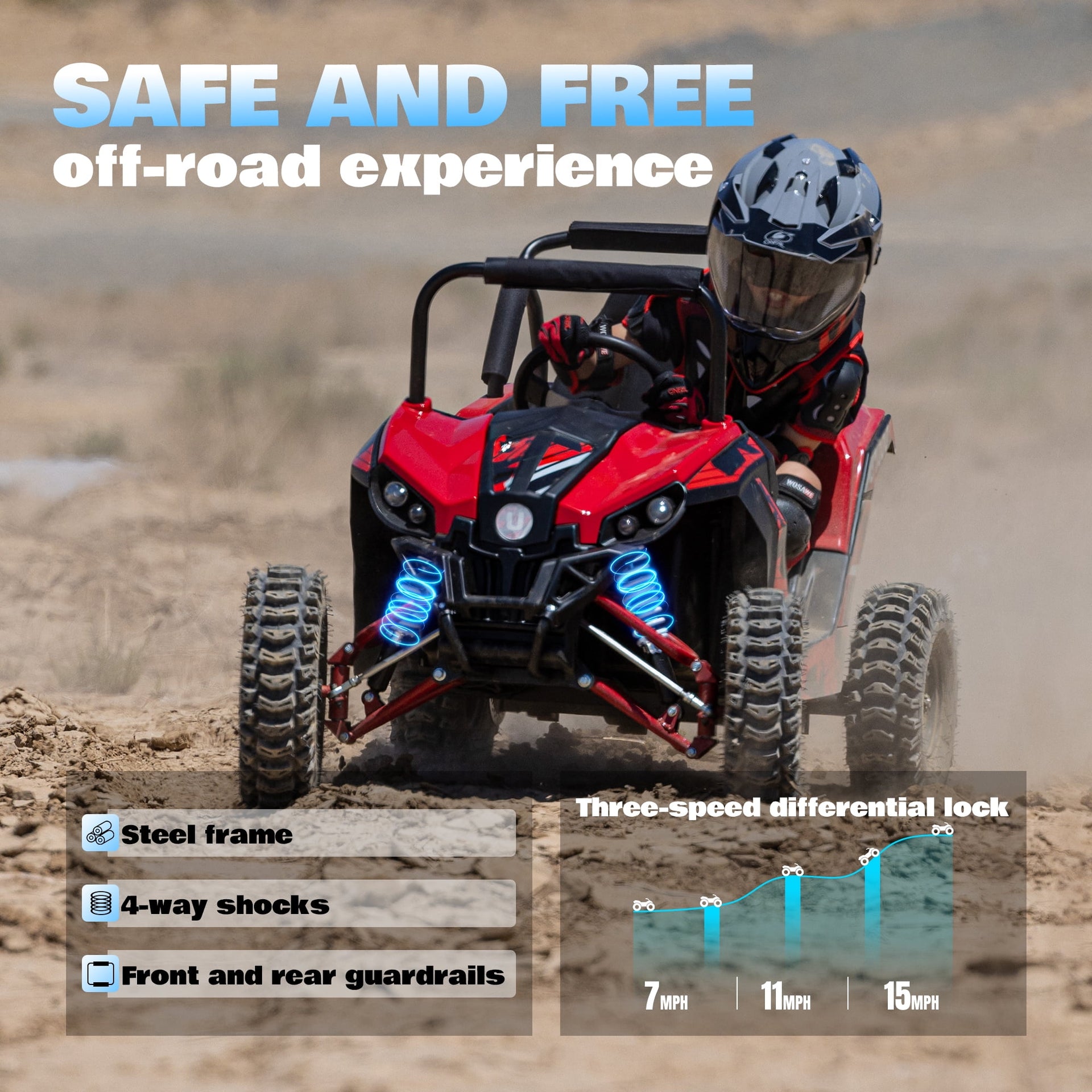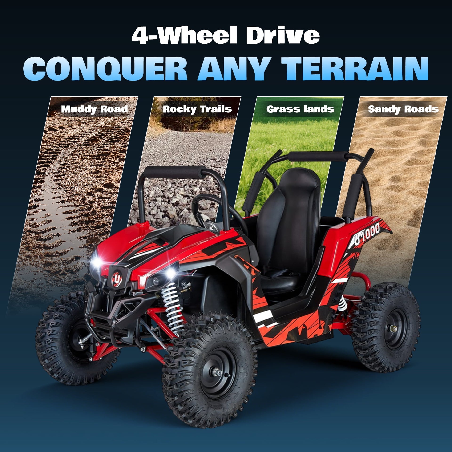 Aoemoe 48V UTV 1000W Motor,48 Volt Ride on Toys ,Electric Vehicles with Disk Brake,Gear Switch, Steel Frame, Off-Road Tire, Flexible Seat Belt and Seat, Three-Speed Limit-Lock Function(Red)