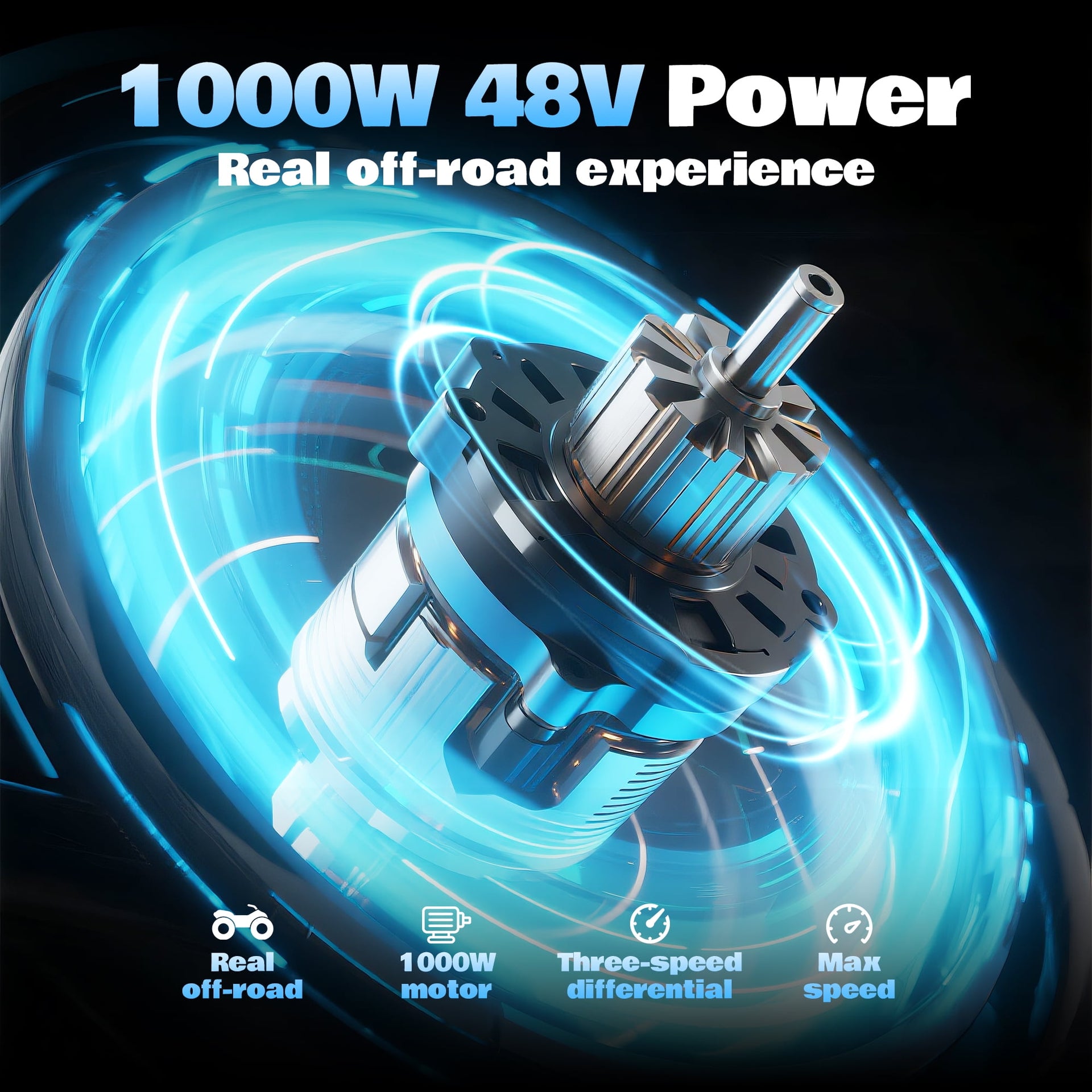 • 48 V 1000 W brushless power-plant hits 15 mph, supports 165 lb, and runs 60-90 min per charge; charger ships in the box.