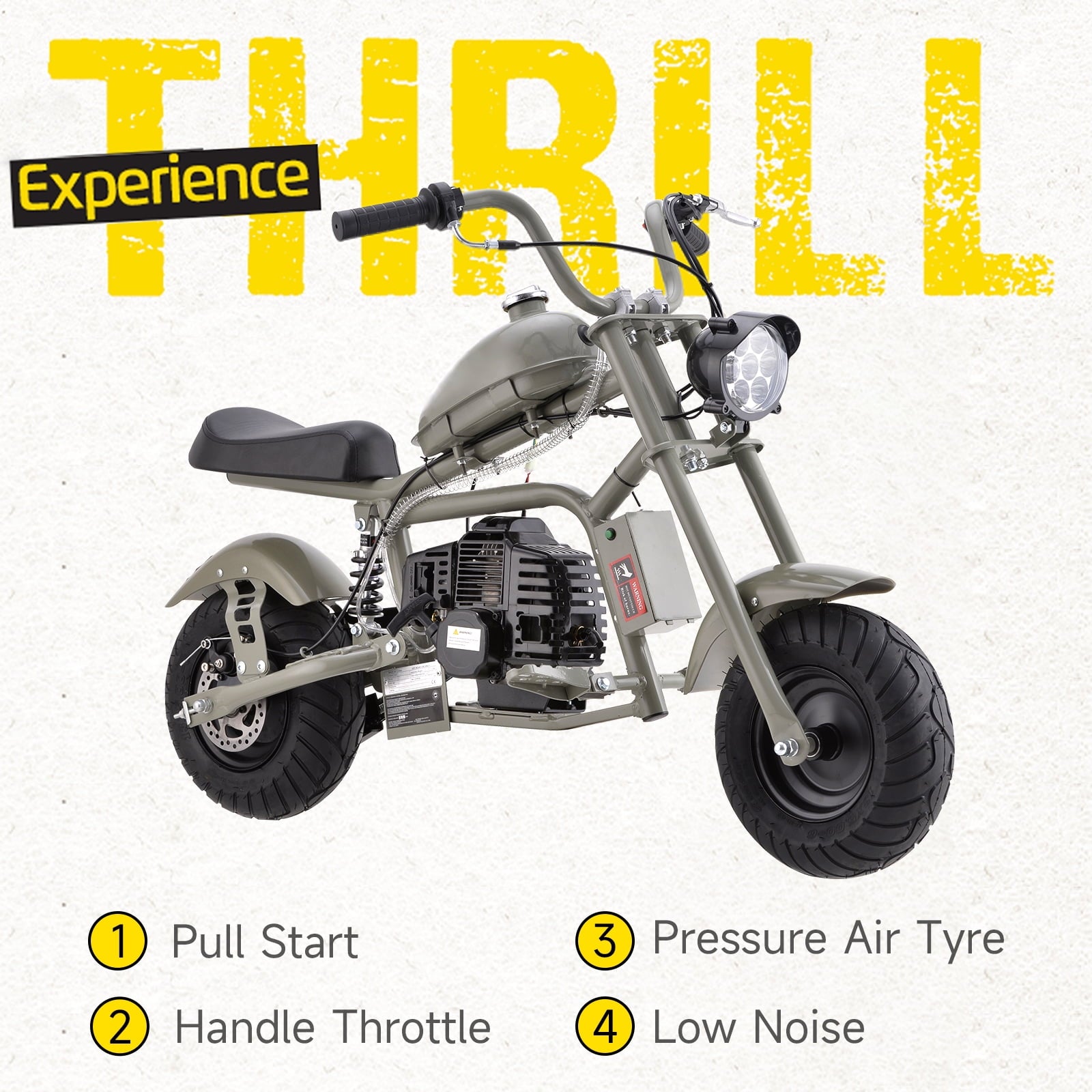 Aoemoe 49cc Gas Mini Chopper for Teens & Adults, Dirt Bike with Headlight, Rear Shock, Disc Brakes, 20MPH, Gary