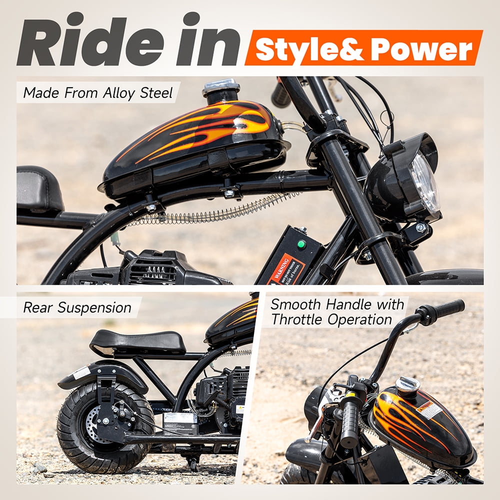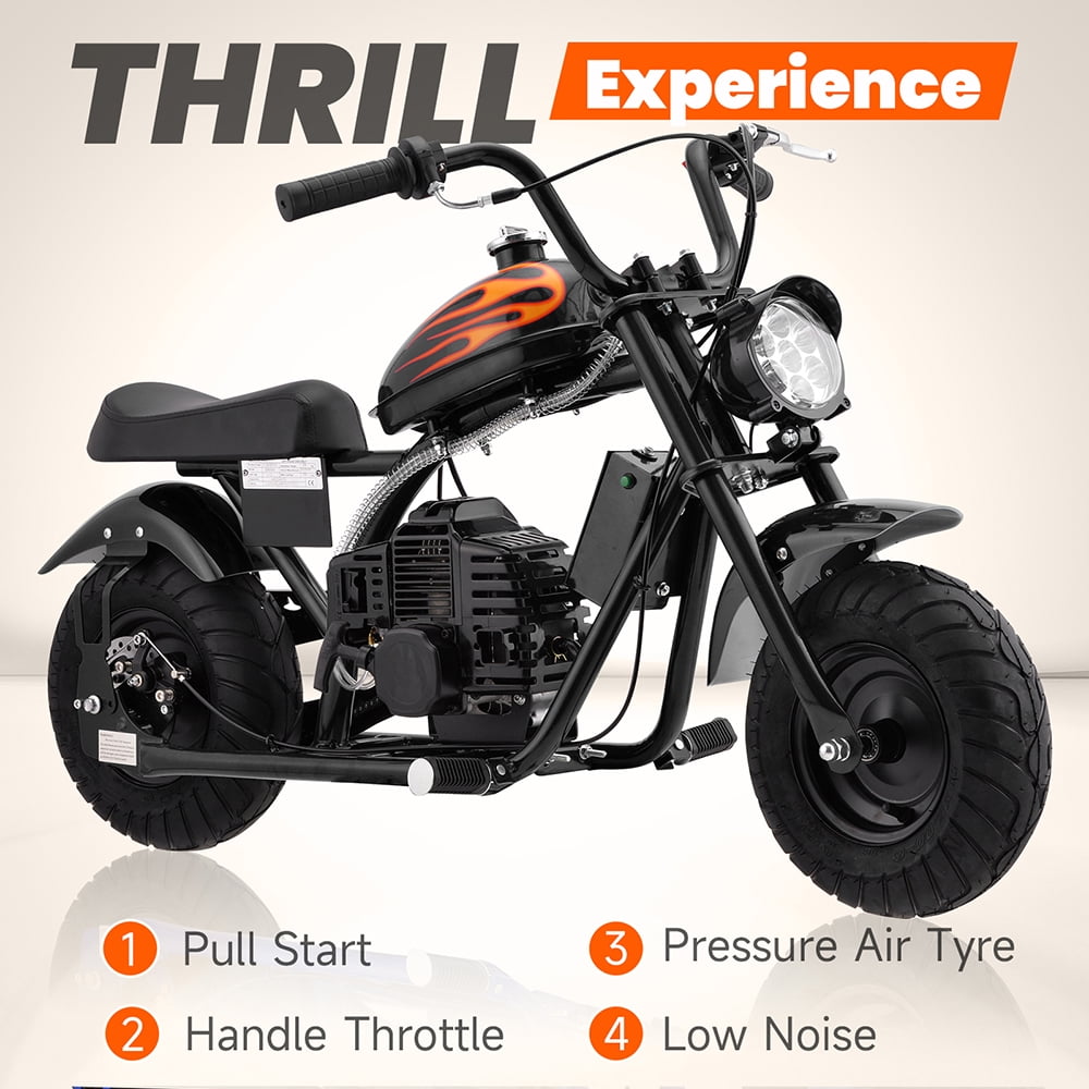 Aoemoe 49cc Kids Mini Chopper Dirt Bike, 2-Stroke Gas Powered Off-Road Motorcycle with Disc Brakes, Max Speed 18MPH, Max Load 160LBS, Black