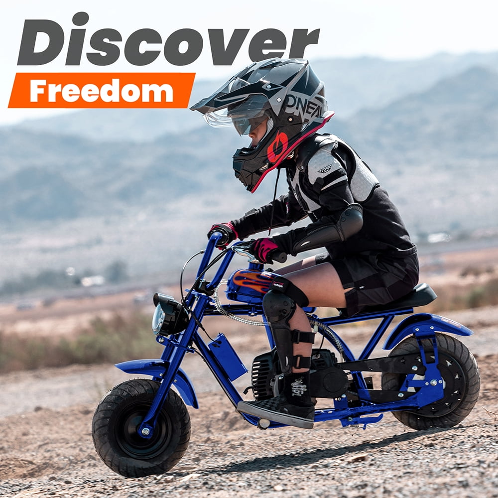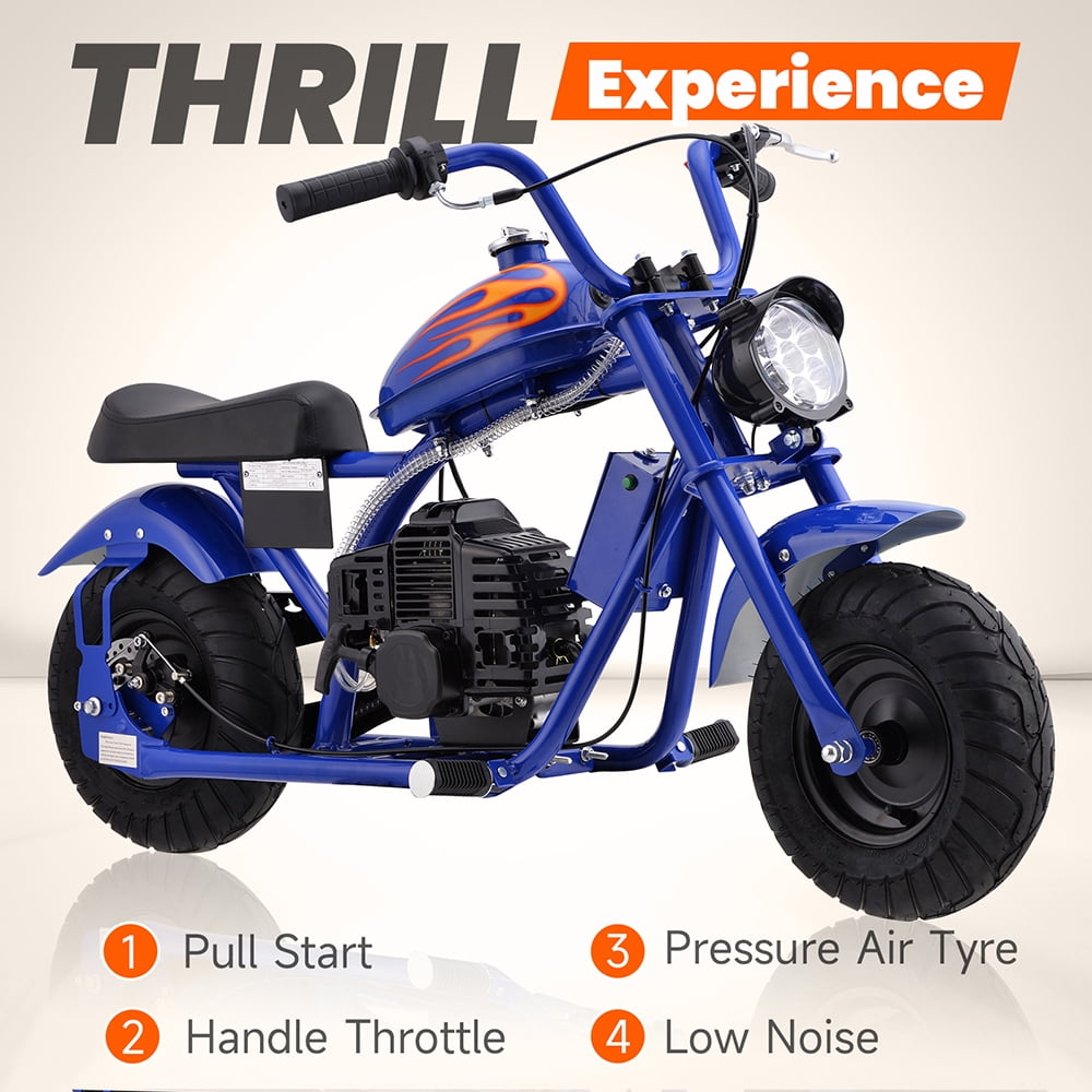 Aoemoe 49cc Kids Mini Chopper Dirt Bike, 2-Stroke Gas Powered Off-Road Motorcycle with Disc Brakes, Max Speed 18MPH, Max Load 160LBS, Blue
