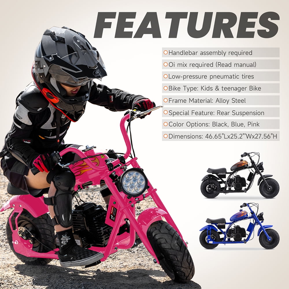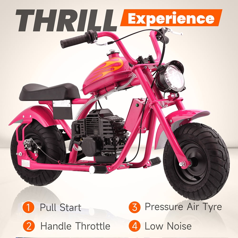 Aoemoe 49cc Kids Mini Chopper Dirt Bike, 2-Stroke Gas Powered Off-Road Motorcycle with Disc Brakes, Max Speed 18MPH, Max Load 160LBS, Pink