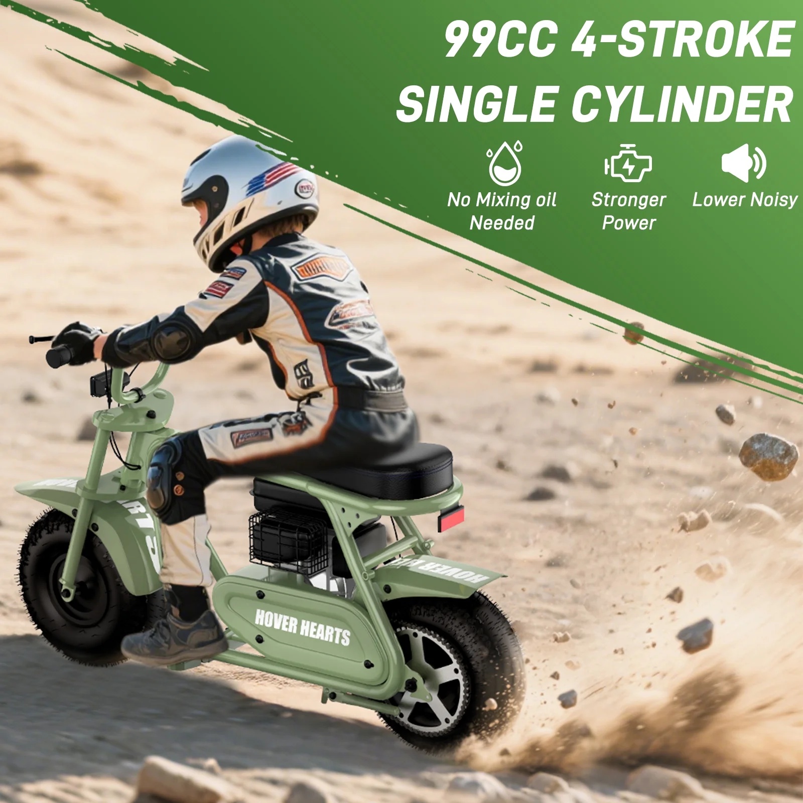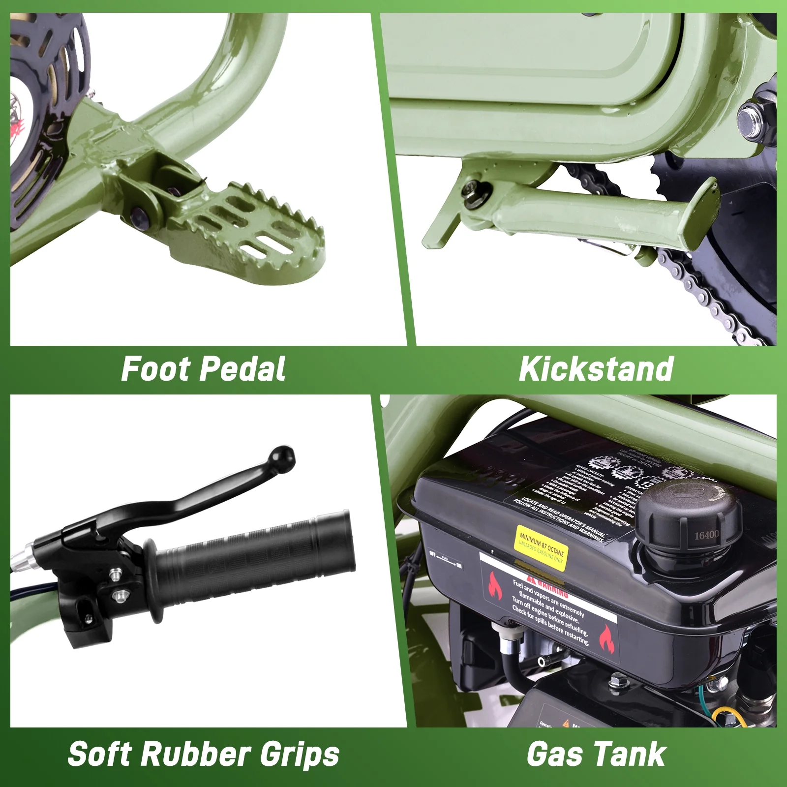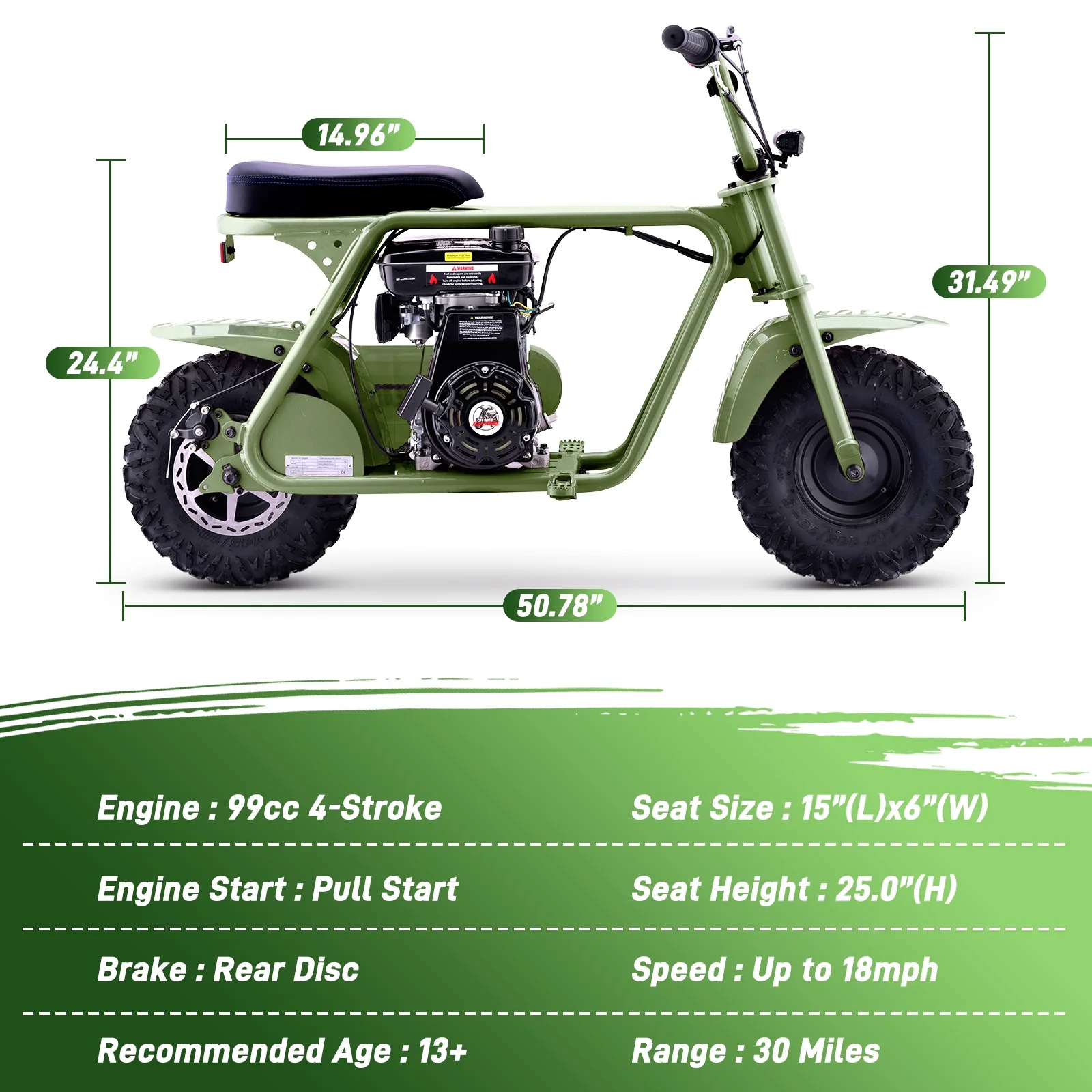 Aoemoe 99CC MB001 Gasoline Mini Dirt Bike,4-Stroke 18MPH Off Road Motorcycle, Weight Support Up to 165 LBS - Army green