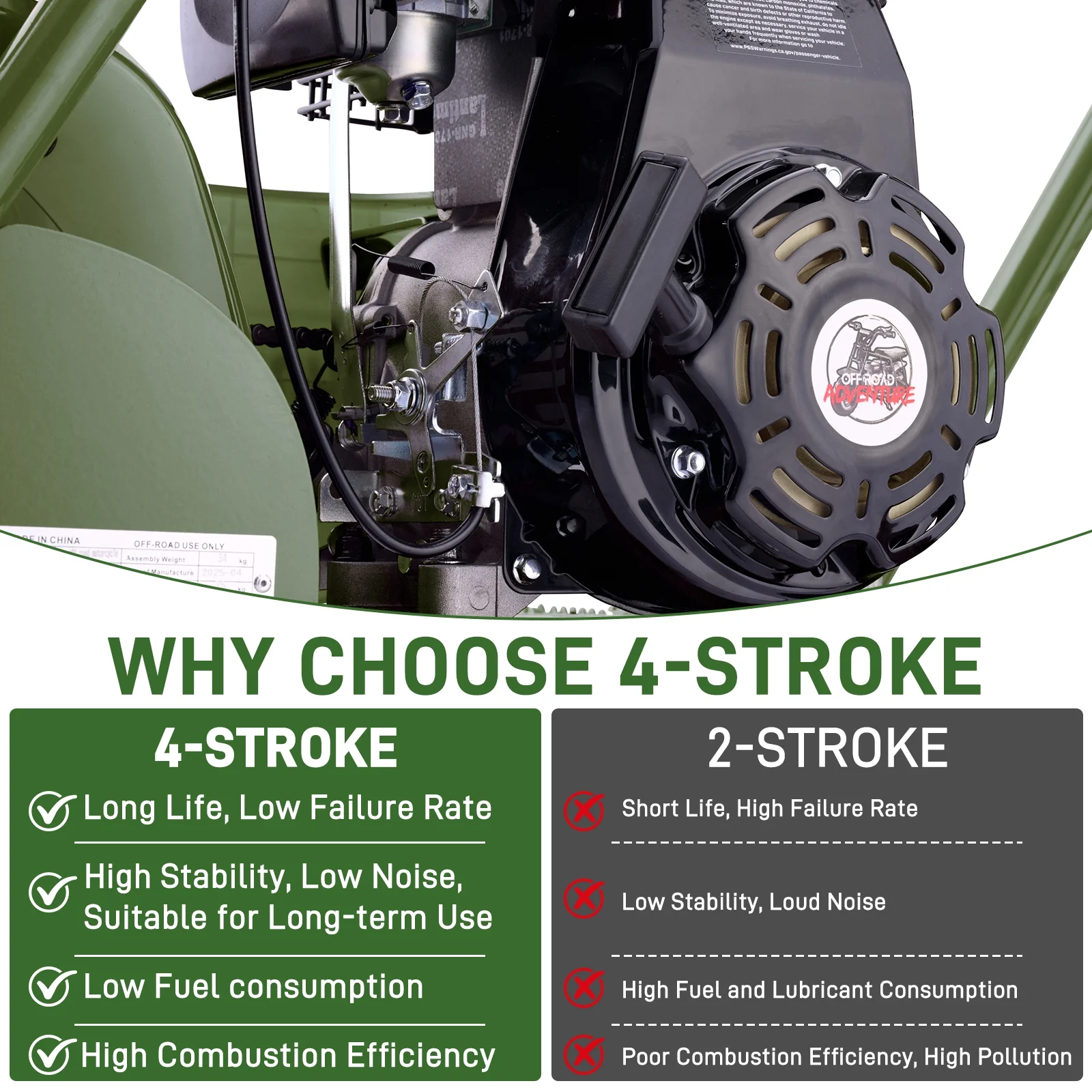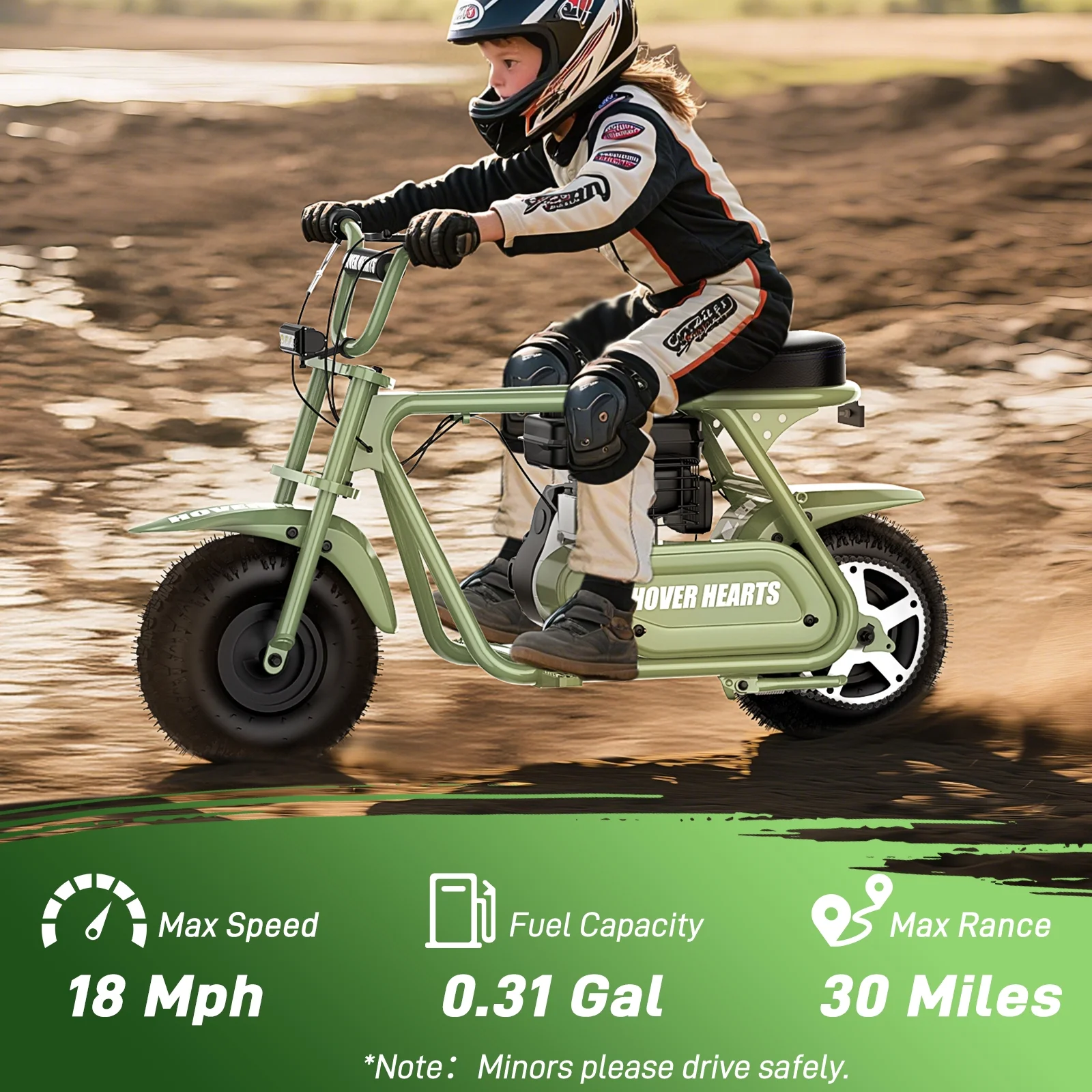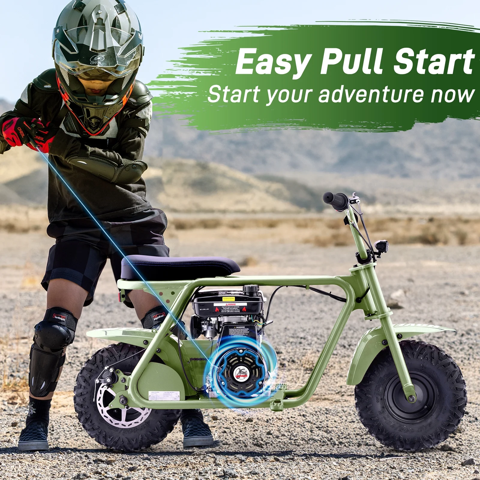 Aoemoe 99CC MB001 Gasoline Mini Dirt Bike,4-Stroke 18MPH Off Road Motorcycle, Weight Support Up to 165 LBS - Army green