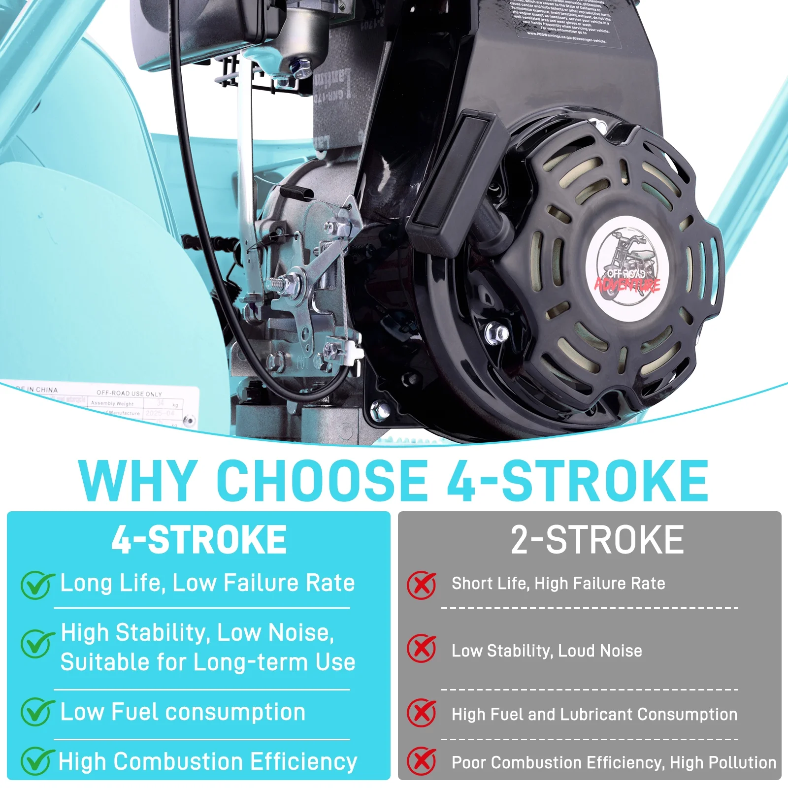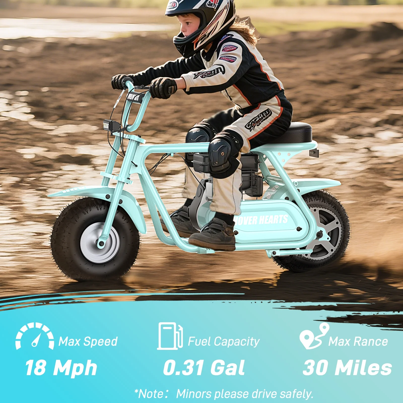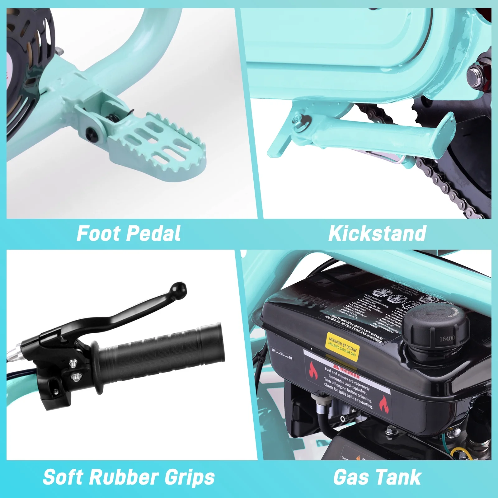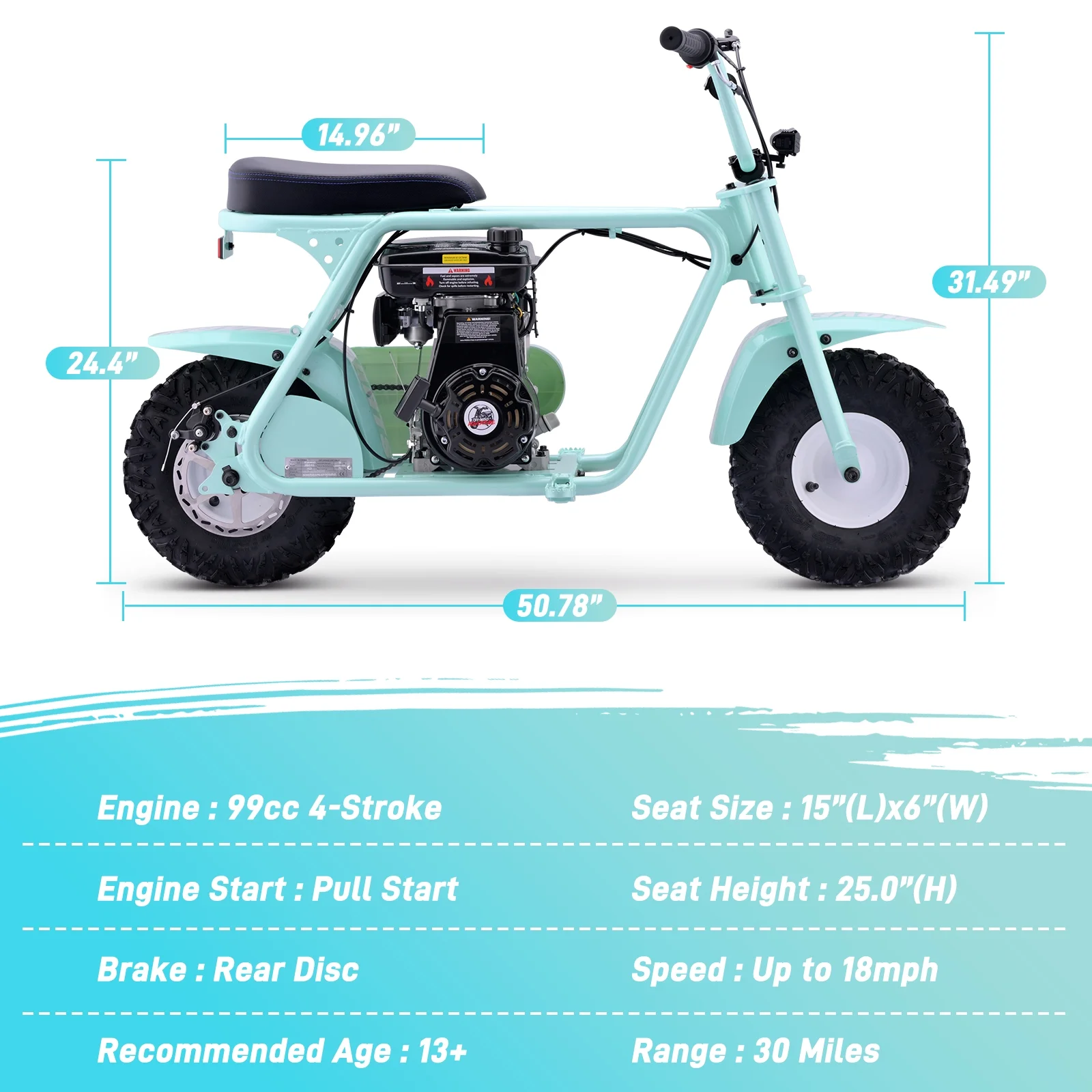 Aoemoe 99CC MB001 Gasoline Mini Dirt Bike,4-Stroke 18MPH Off Road Motorcycle, Weight Support Up to 165 LBS - Mint Green