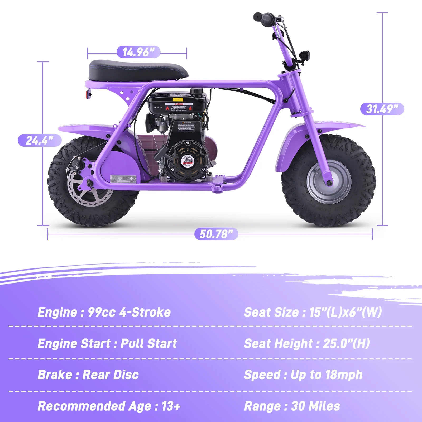 Aoemoe MB001 Gasoline Mini Dirt Bike,4-Stroke 18MPH Off Road Motorcycle, Weight Support Up to 165 LBS - Purple