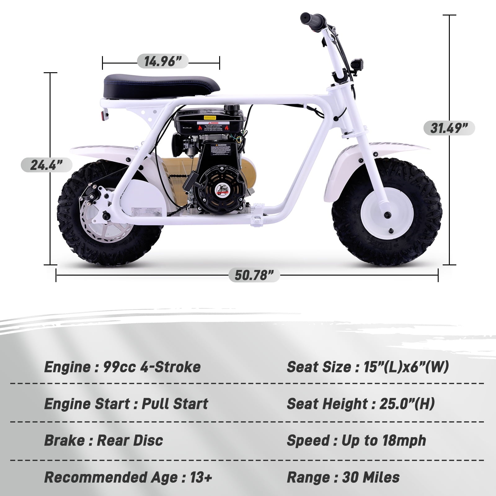 Aoemoe 99CC MB001 Gasoline Mini Dirt Bike,4-Stroke 18MPH Off Road Motorcycle, Weight Support Up to 165 LBS - White