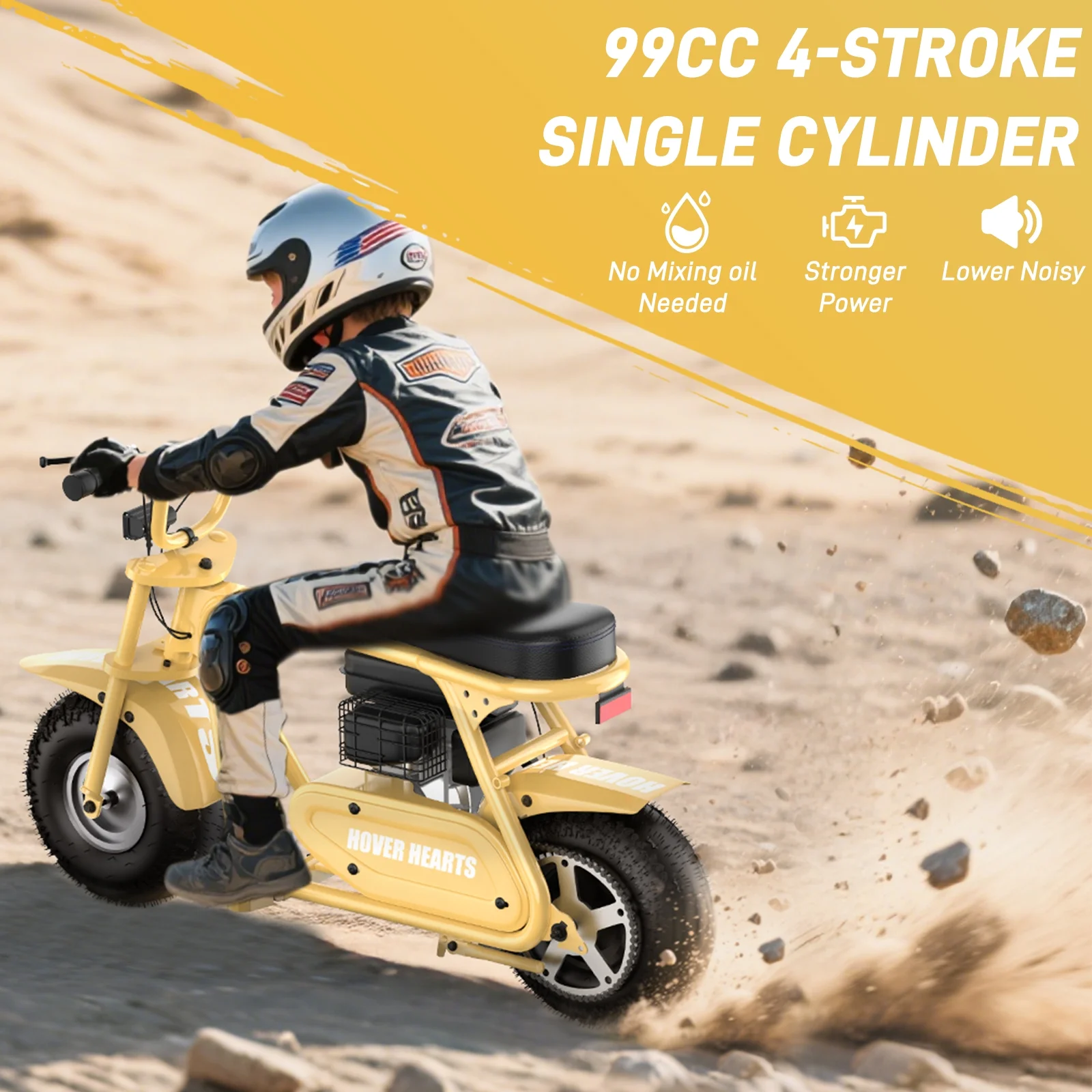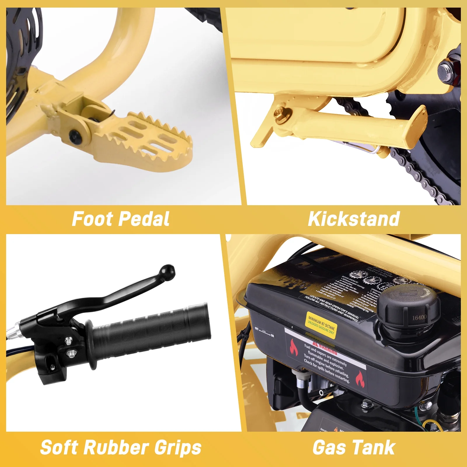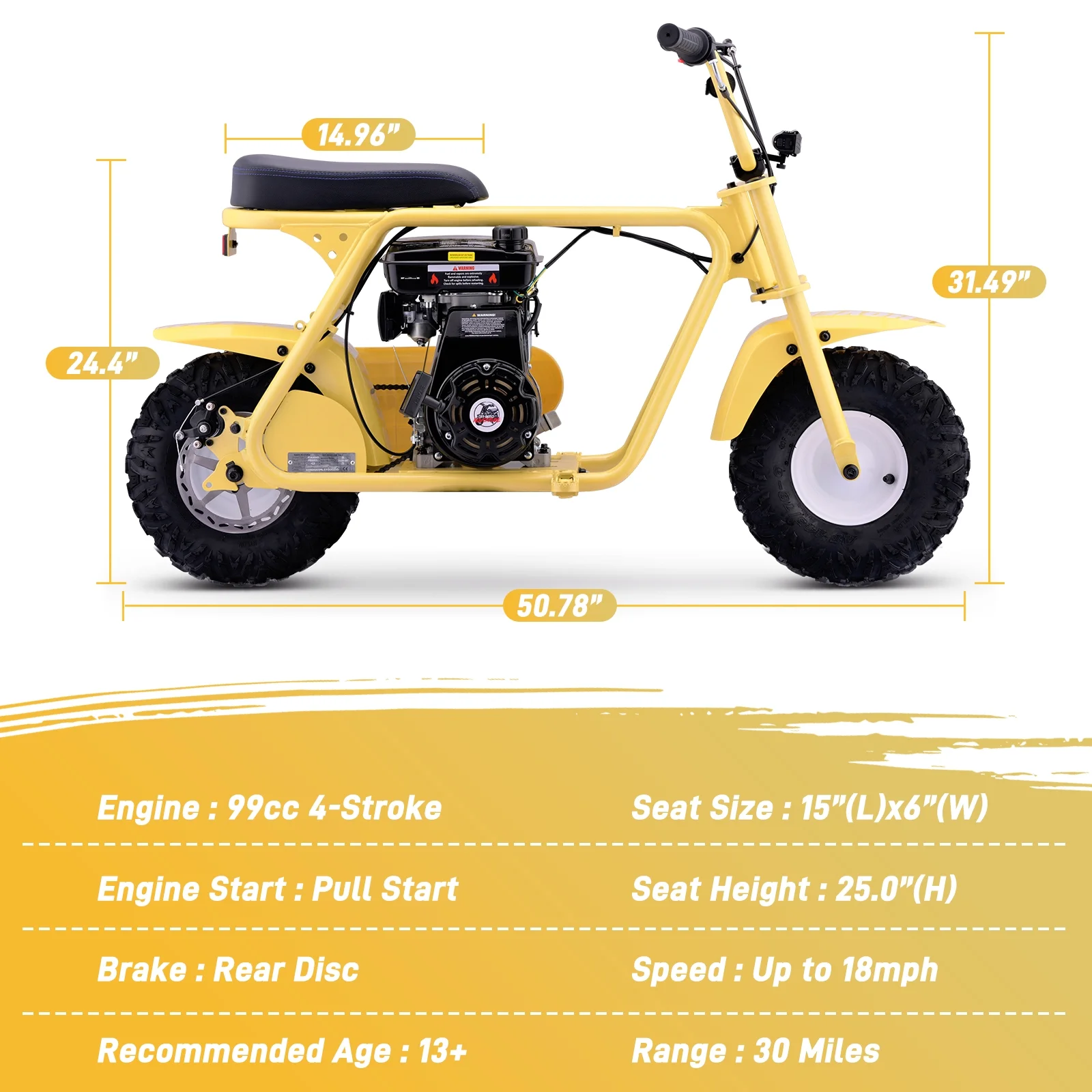 Aoemoe 99CC MB001 Gasoline Mini Dirt Bike,4-Stroke 18MPH Off Road Motorcycle, Weight Support Up to 165 LBS - Yellow