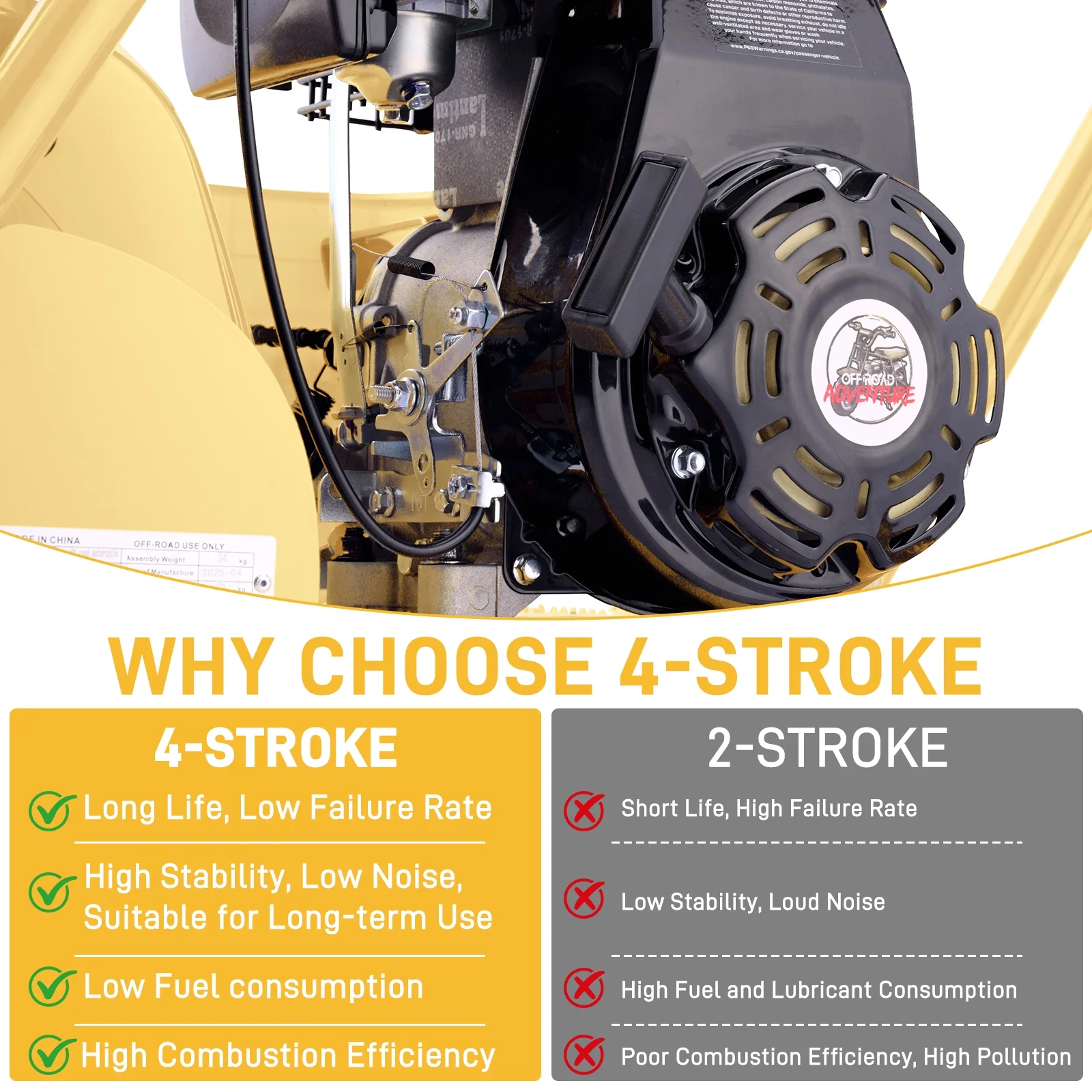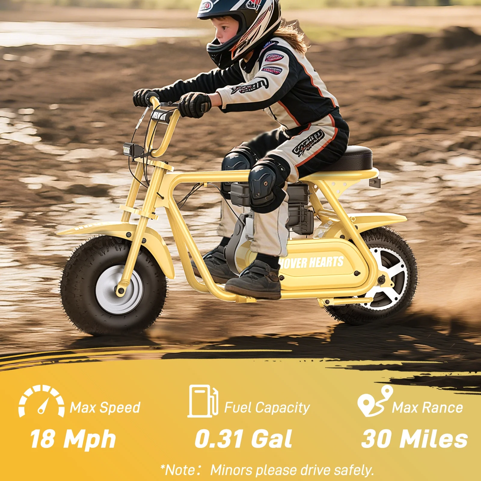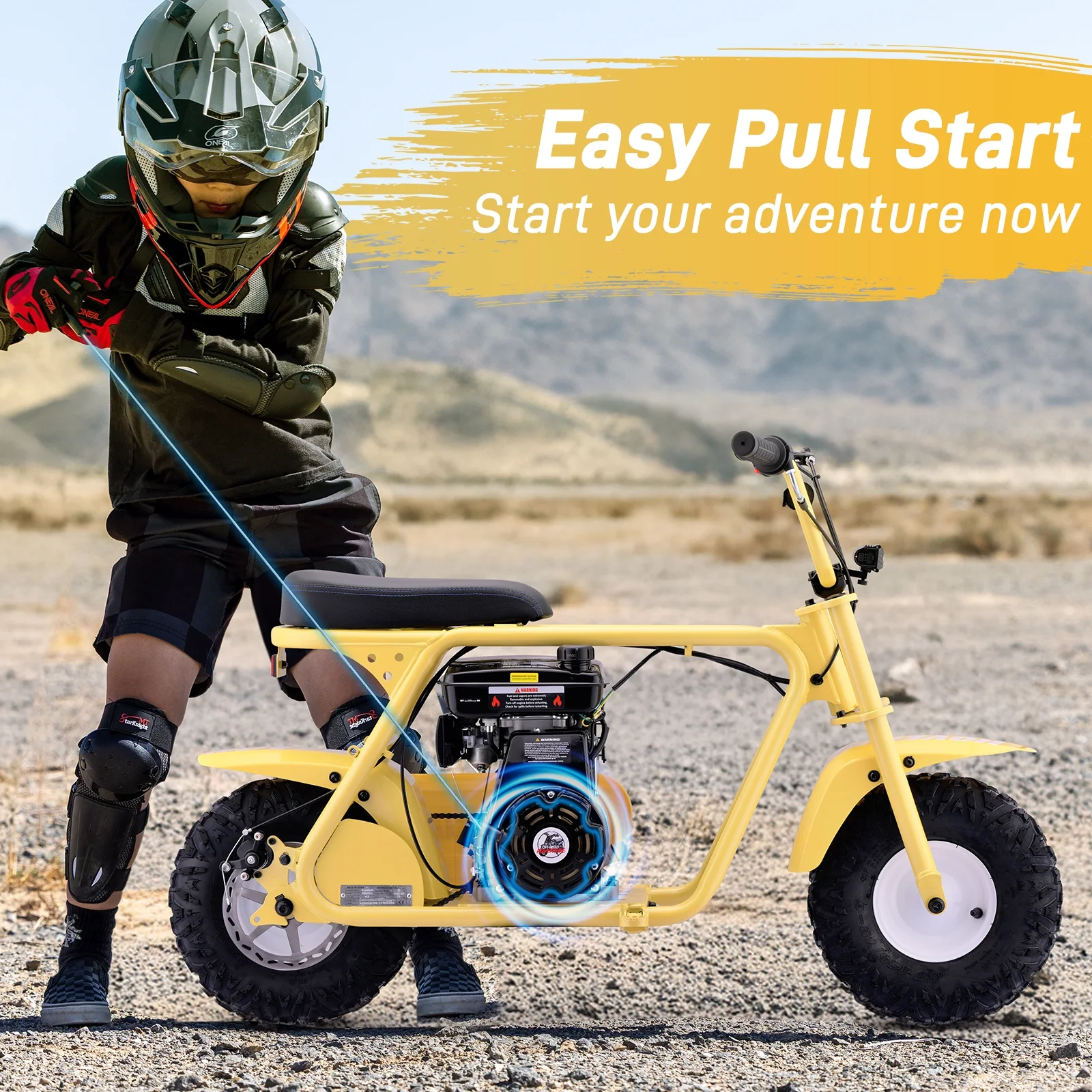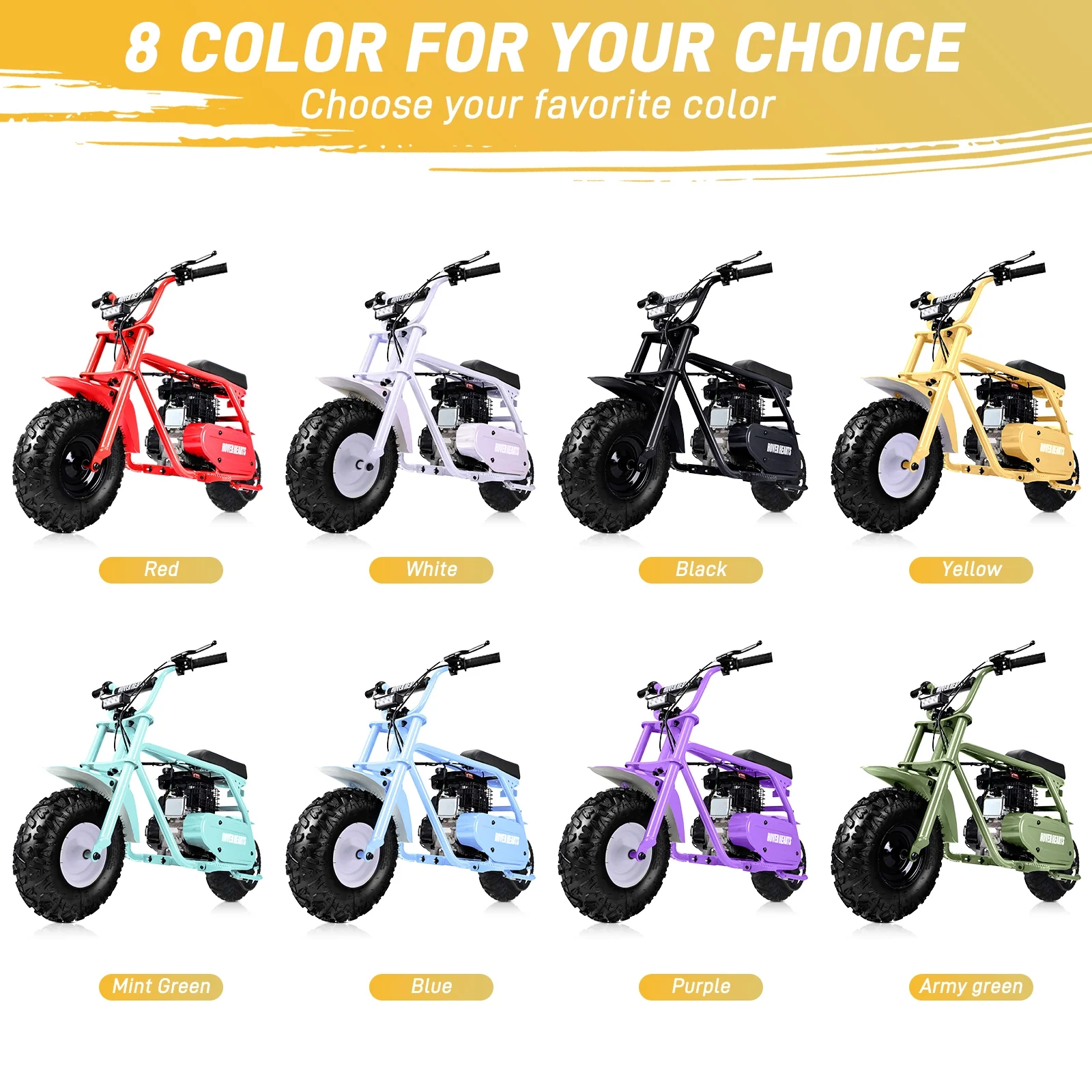 Aoemoe 99CC MB001 Gasoline Mini Dirt Bike,4-Stroke 18MPH Off Road Motorcycle, Weight Support Up to 165 LBS - Yellow