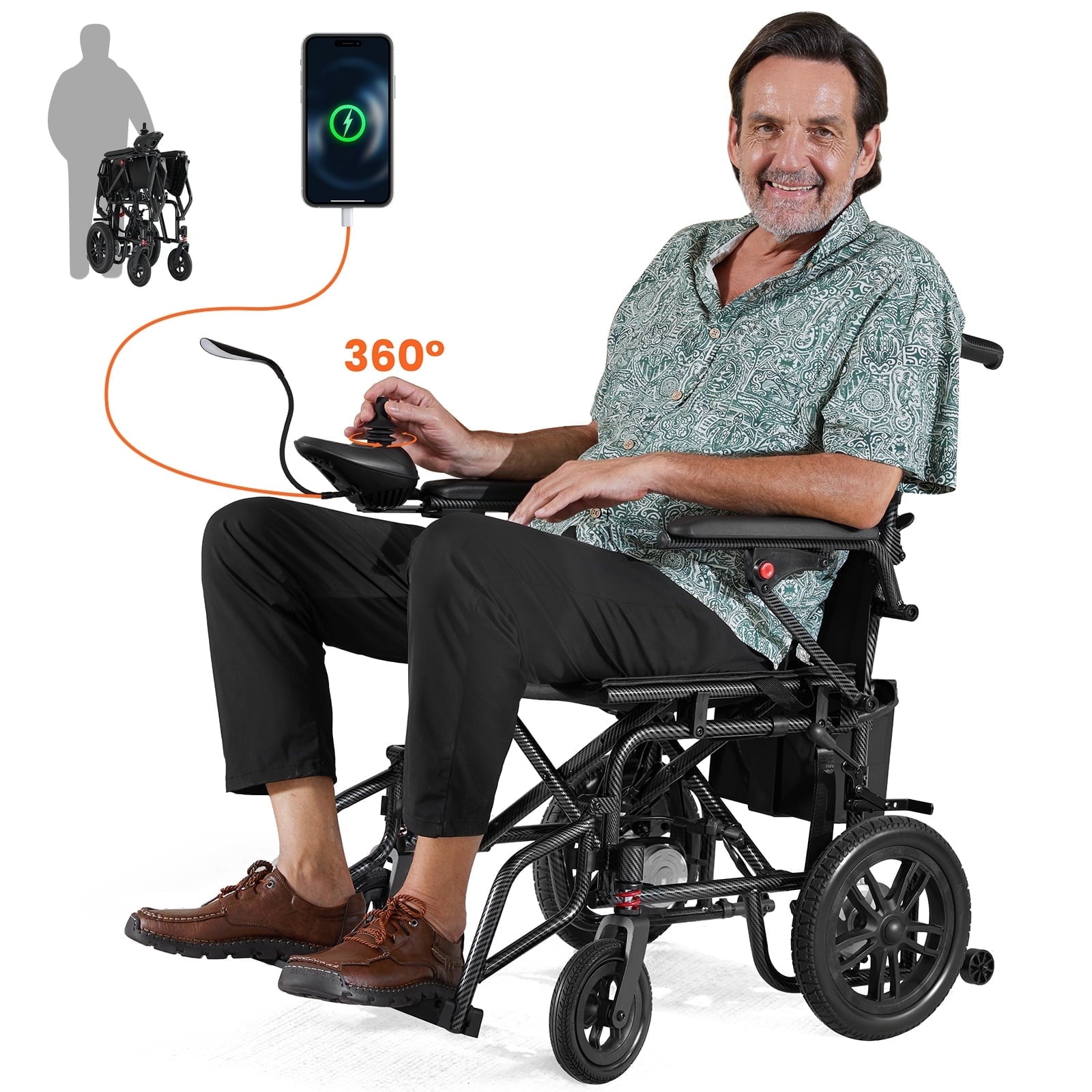• Smart LED joystick with USB charge port, 5-level speed control, horn, and anti-rollback electromagnetic brakes—intuitive for first-time Electric wheelchair users and seasoned riders alike.