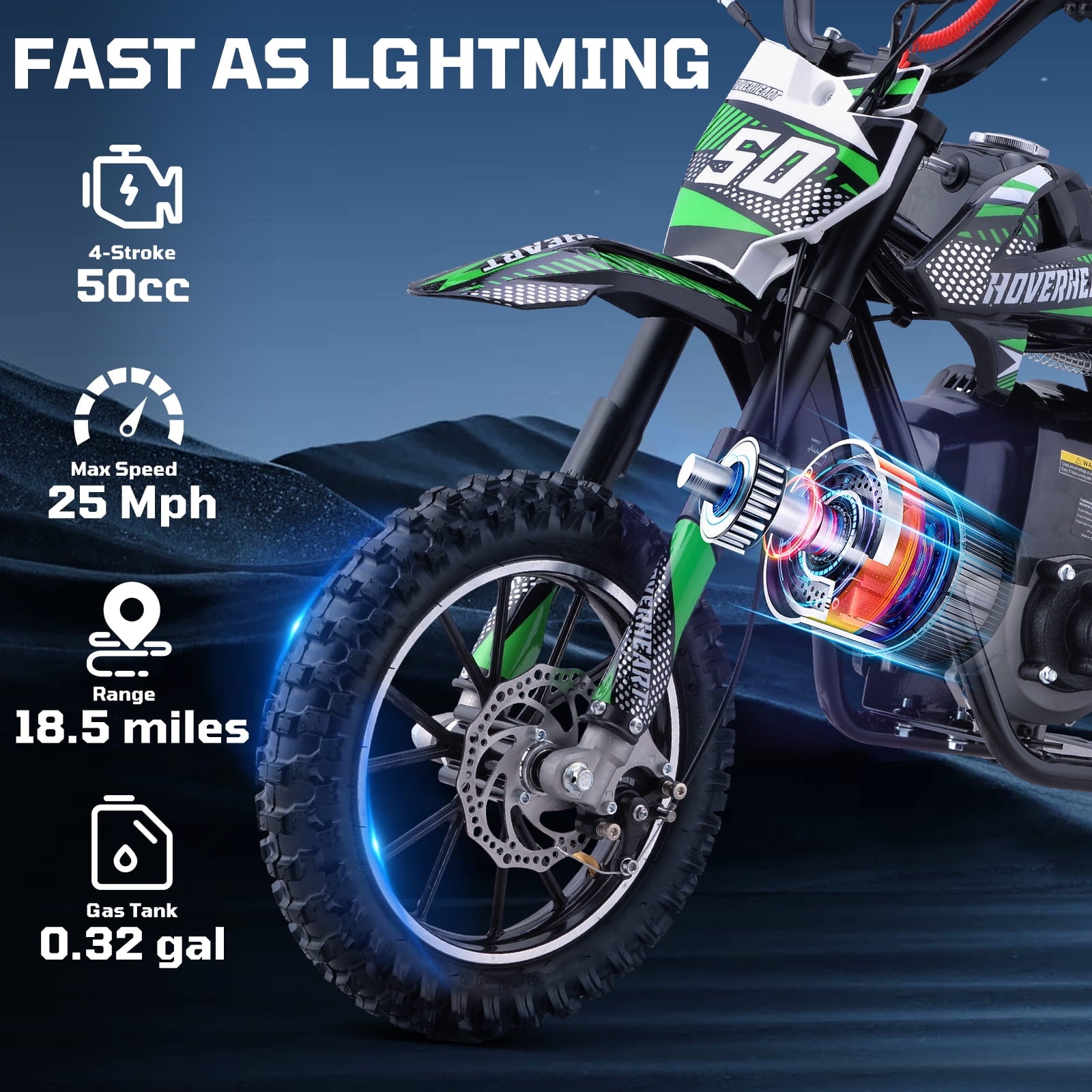 Aoemoe Gas Dirt Bike, 50cc 4-Stroke Gas Powered Kids Off Road Motorcycle (Model-DB4S004) with Off-Road Tire, Suspensions, Disc Brakes, Max Load 165Lbs, Up to 25Mph, NO OIL MIX REQUIRED