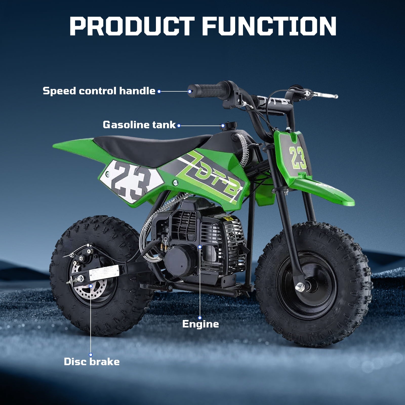 Aoemoe Mini Kid Dirt Bike, 49 CC 2-Stroke Gas Bike with Off-Rode Tire, Suspensions, Disc Brakes, Max Load 160Lbs, Up to 20Mph, EPA Approved