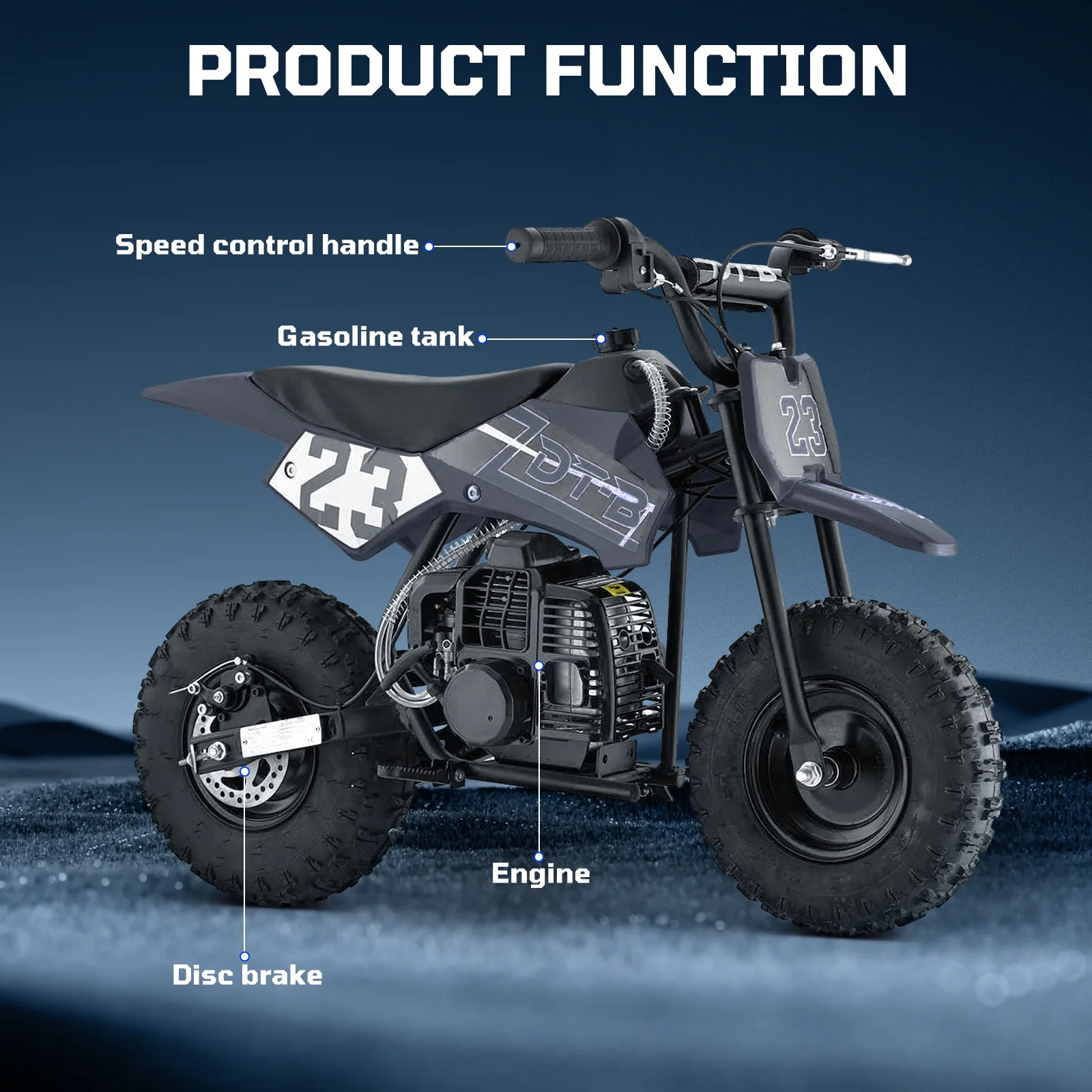 Aoemoe Mini Kid Dirt Bike, 49 CC 2-Stroke Gas Bike with Off-Rode Tire, Suspensions, Disc Brakes, Max Load 160Lbs, Up to 20Mph, EPA Approved