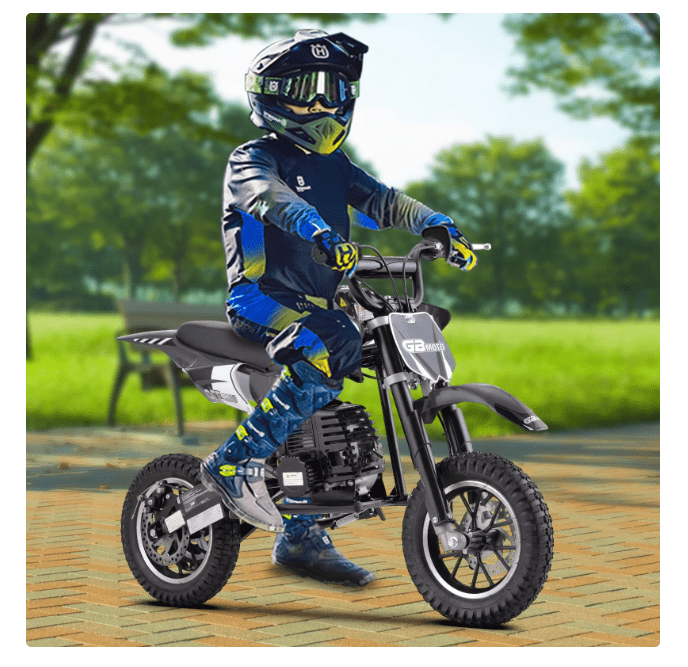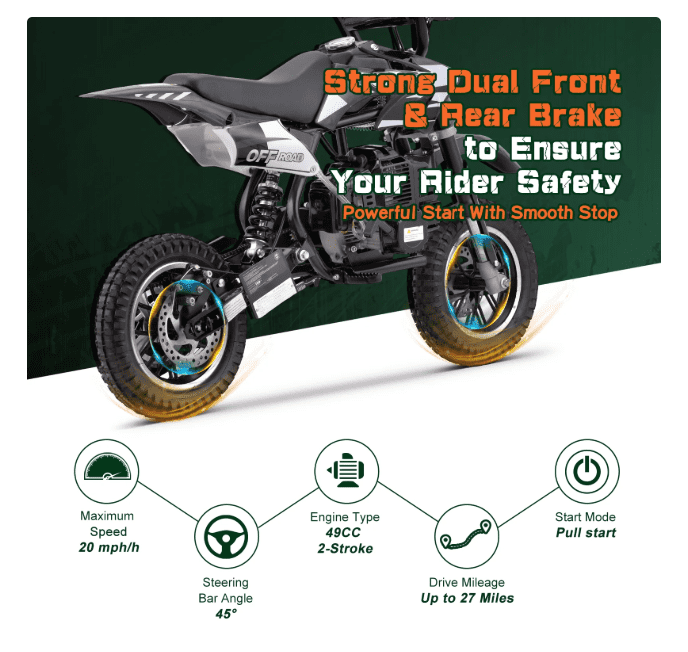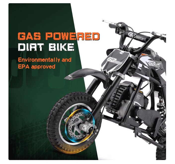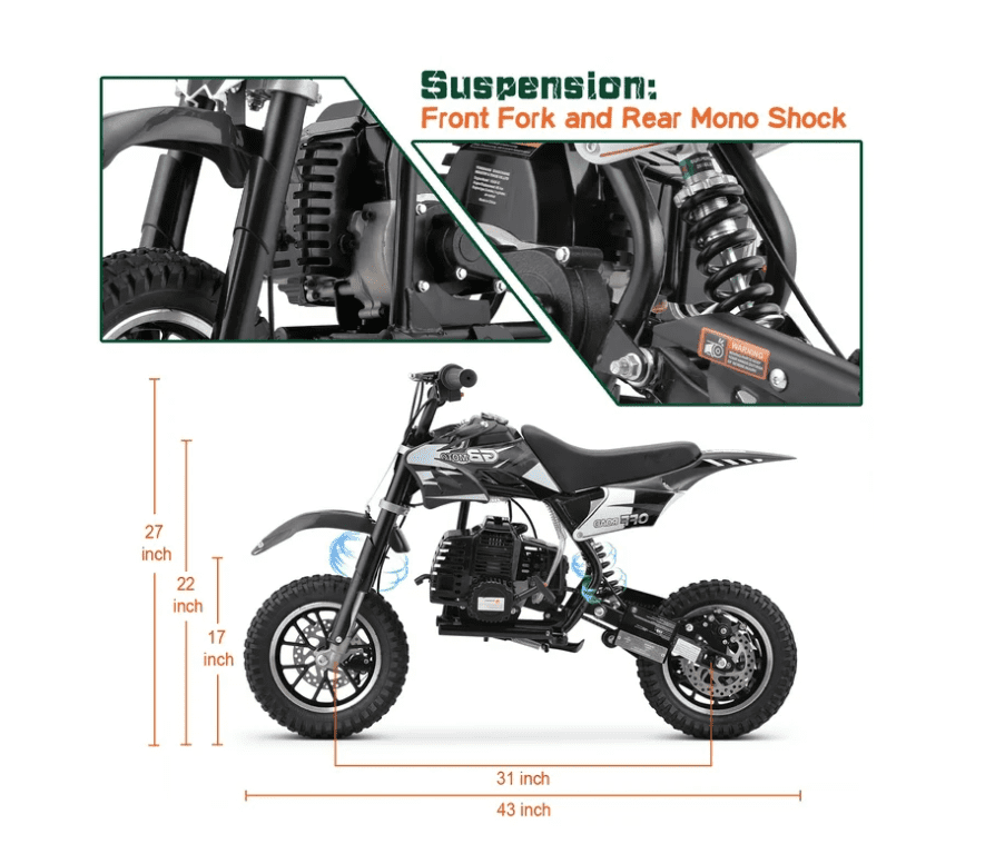 Aoemoe Mini Kid Dirt Bike, 49 CC 2-Stroke Gas Bike with Off-Rode Tire, Suspensions, Disc Brakes, Max Load 160Lbs, Up to 20Mph, EPA Approved