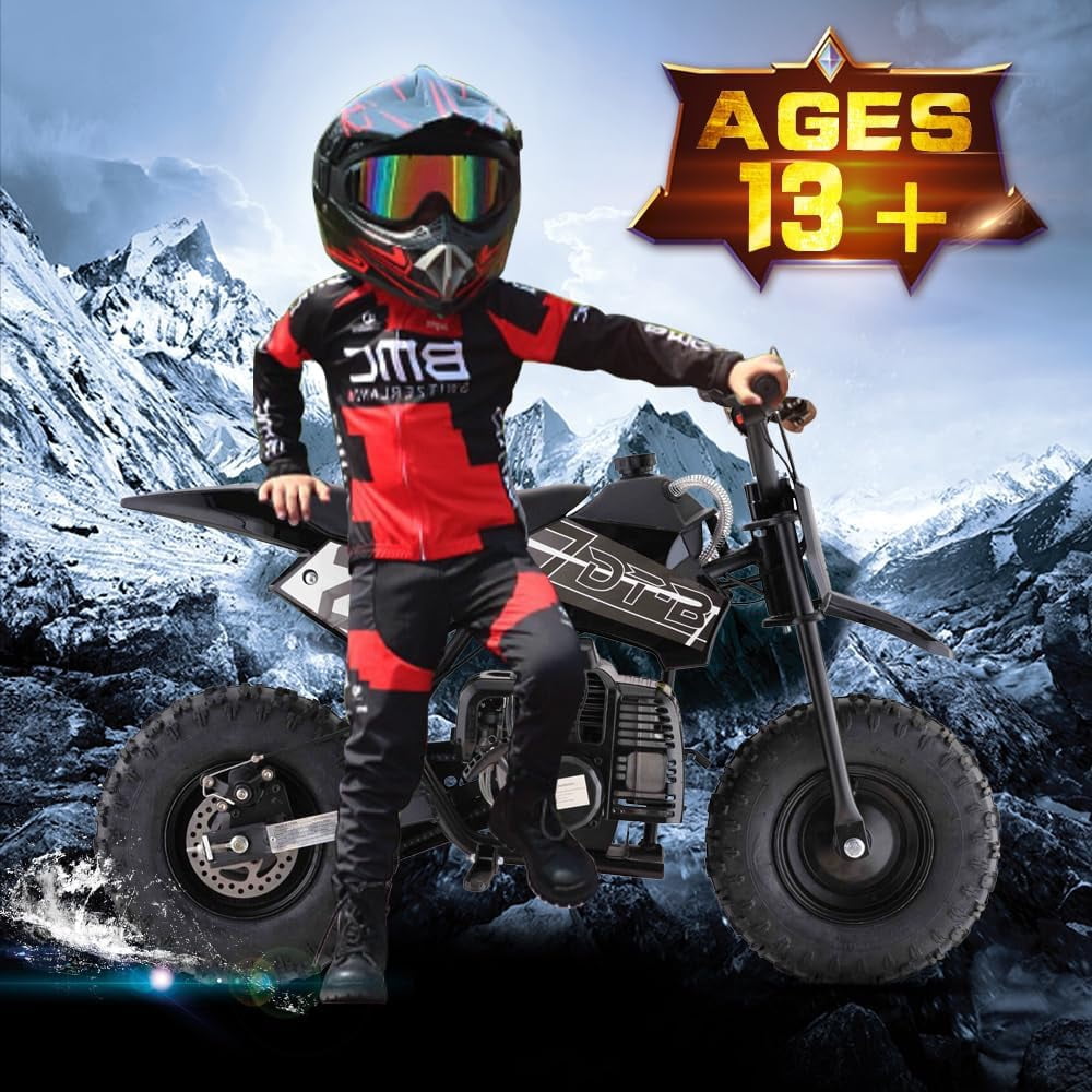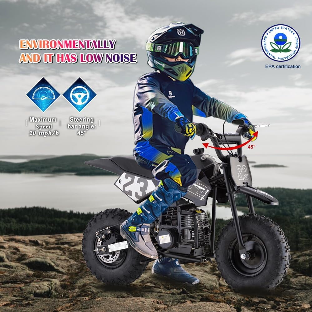Aoemoe Mini Kid Dirt Bike, 49 CC 2-Stroke Gas Bike with Off-Rode Tire, Suspensions, Disc Brakes, Max Load 160Lbs, Up to 20Mph, EPA Approved
