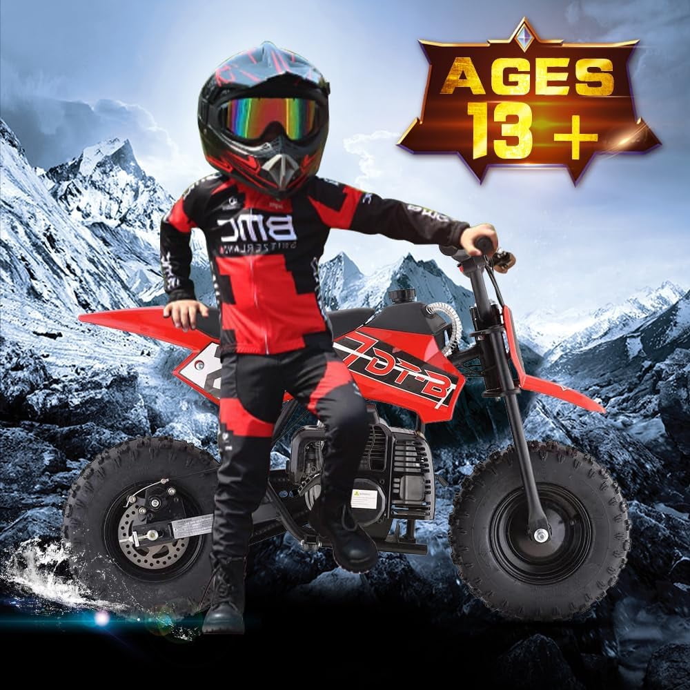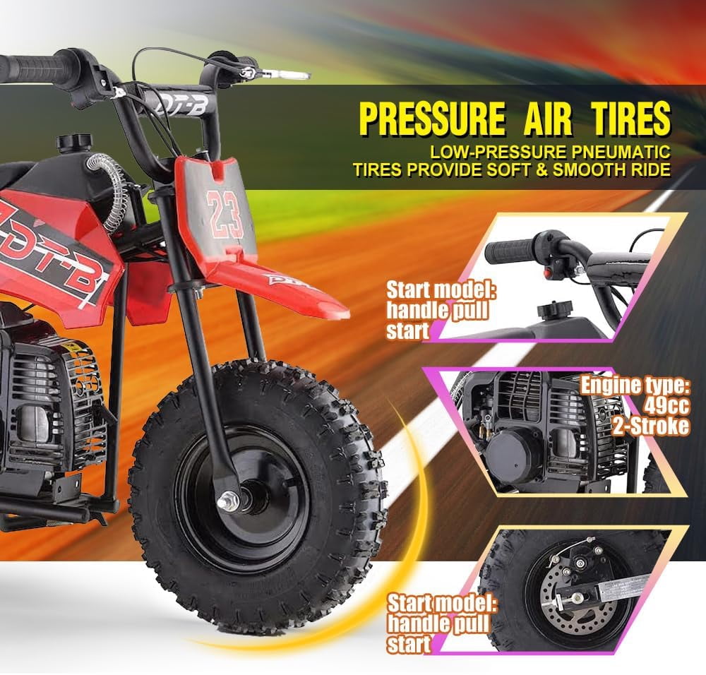Aoemoe Mini Kid Dirt Bike, 49 CC 2-Stroke Gas Bike with Off-Rode Tire, Suspensions, Disc Brakes, Max Load 160Lbs, Up to 20Mph, EPA Approved